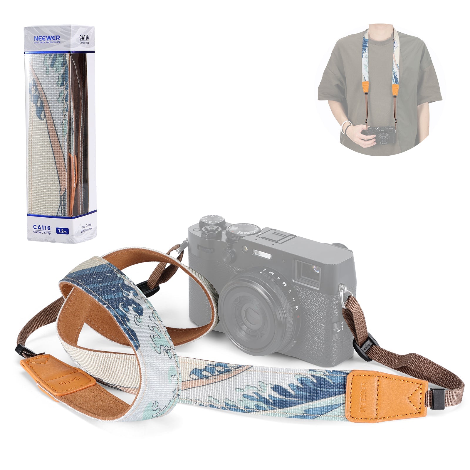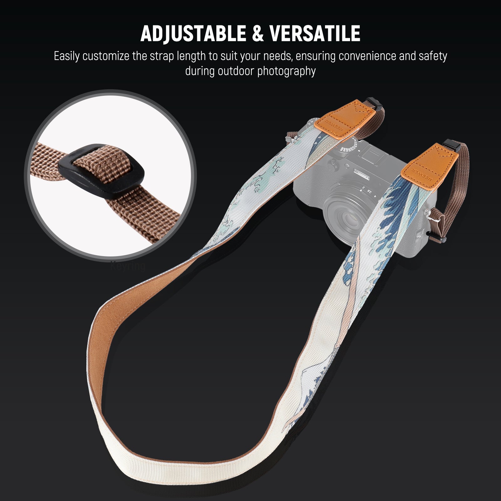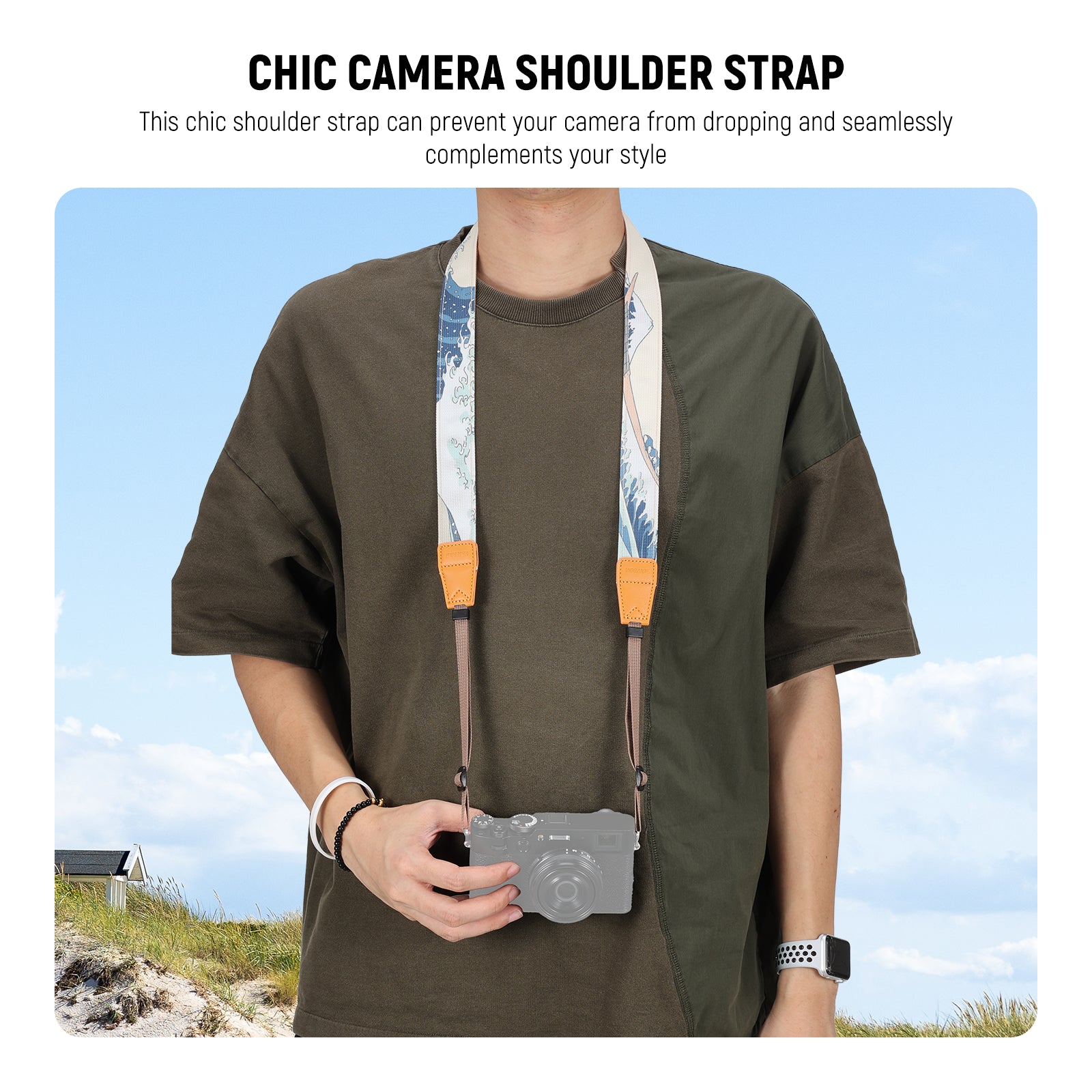 - Design giapponese iconico : decorato con il leggendario "La grande onda di Kanagawa" di Hokusai, questo cinturino aggiunge un tocco di eleganza alla tua fotocamera. 【Qualità costruttiva eccezionale】 Realizzato in robusto tessuto intrecciato per resistere all'usura quotidiana e offrire un'affidabilità duratura