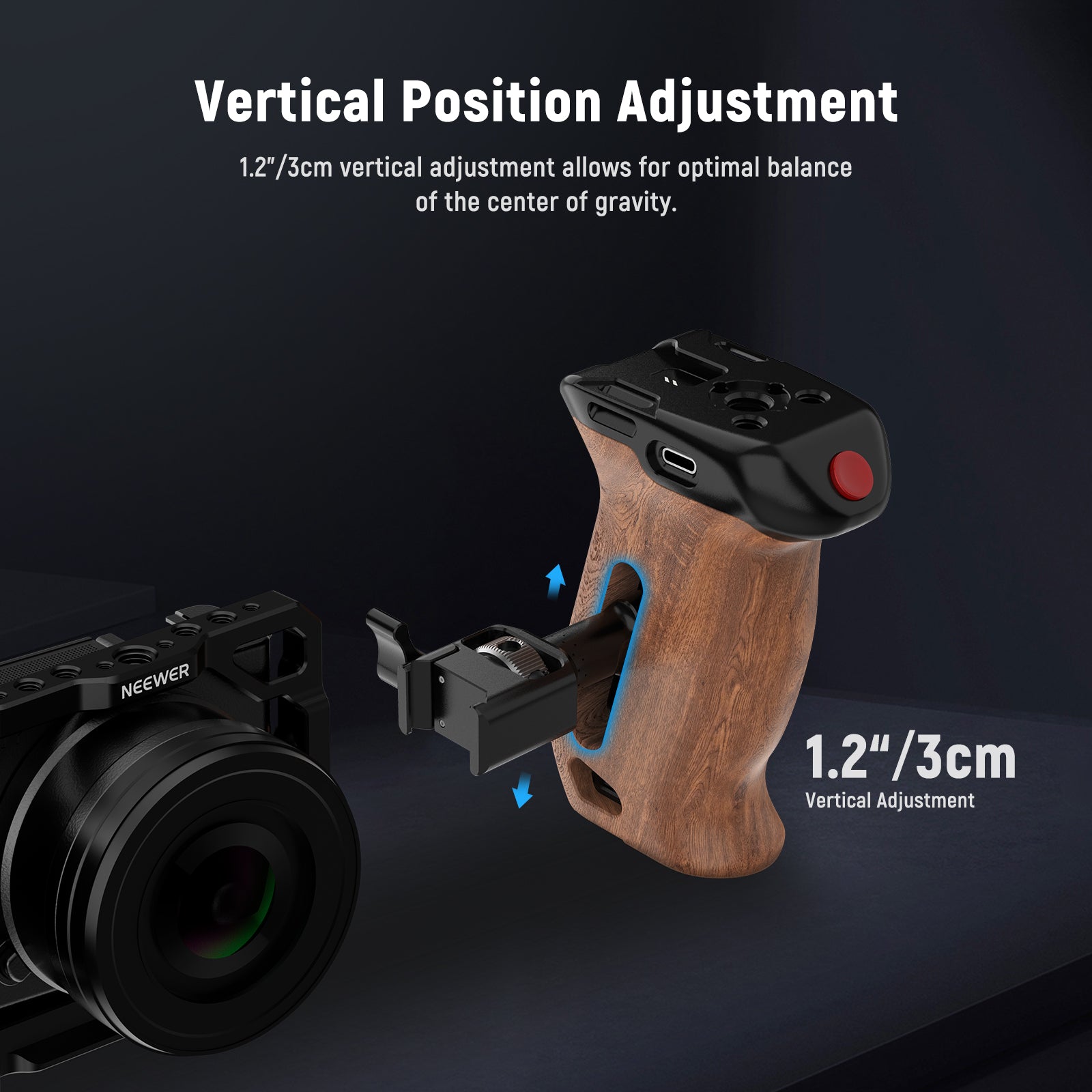NEEWER CA123 Maniglia laterale in legno con grilletto remoto per avvio/arresto della registrazione