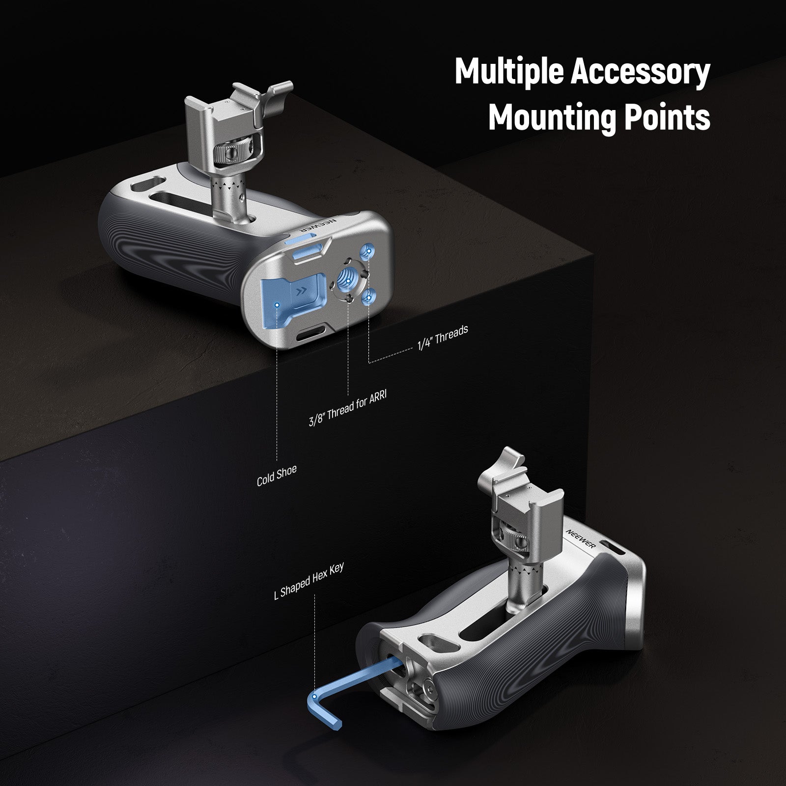 - Punti di montaggio multipli per accessori : con due filettature da 1/4", una filettatura da 3/8" per la localizzazione ARRI, una slitta fredda e quattro slot per cinturino da polso, la maniglia laterale può collegare la luce video LED RGB62 NEEWER, il microfono CM14 PRO, il supporto per monitor MA006 e il cinturino da polso per fotocamera CA090 per l'espansione delle funzioni.