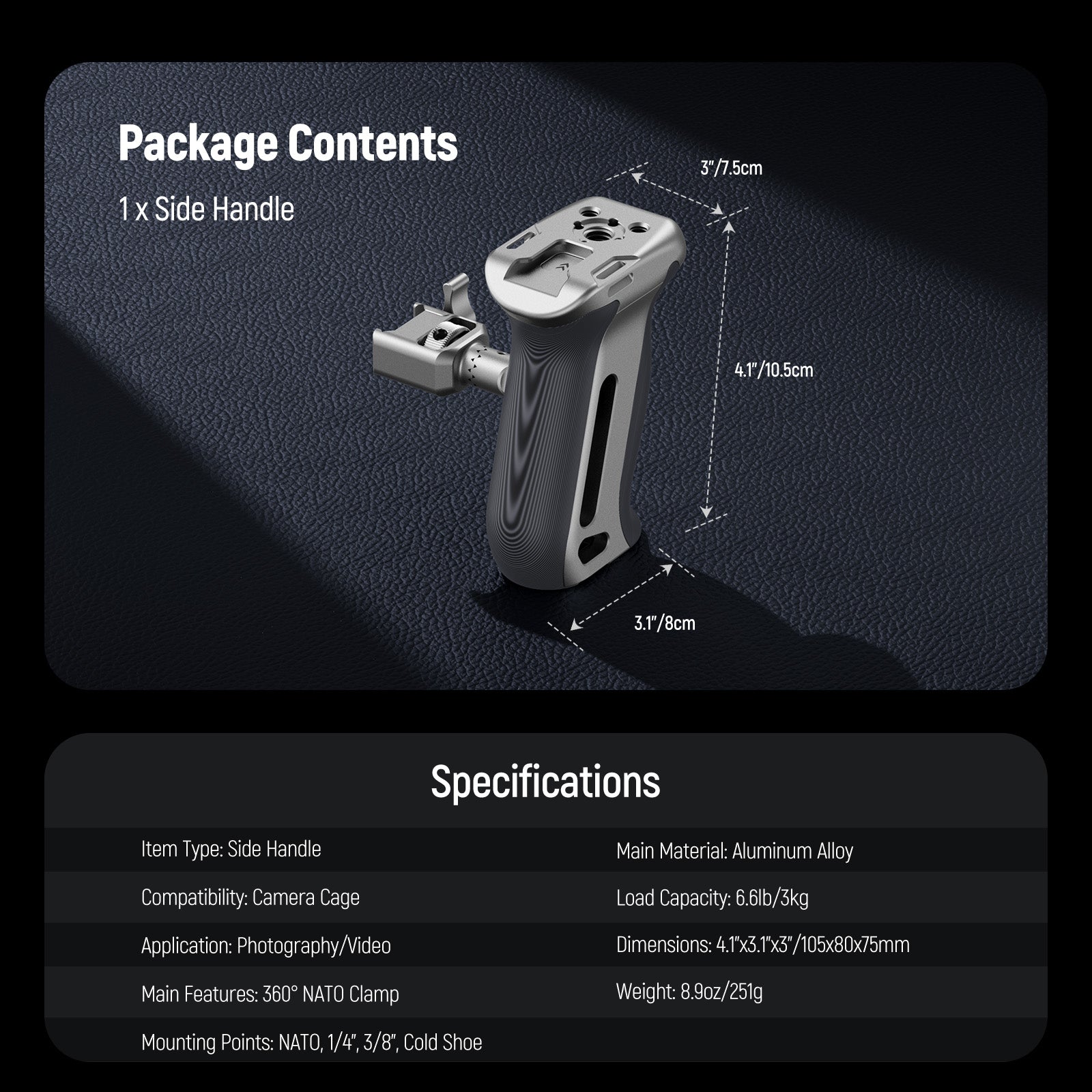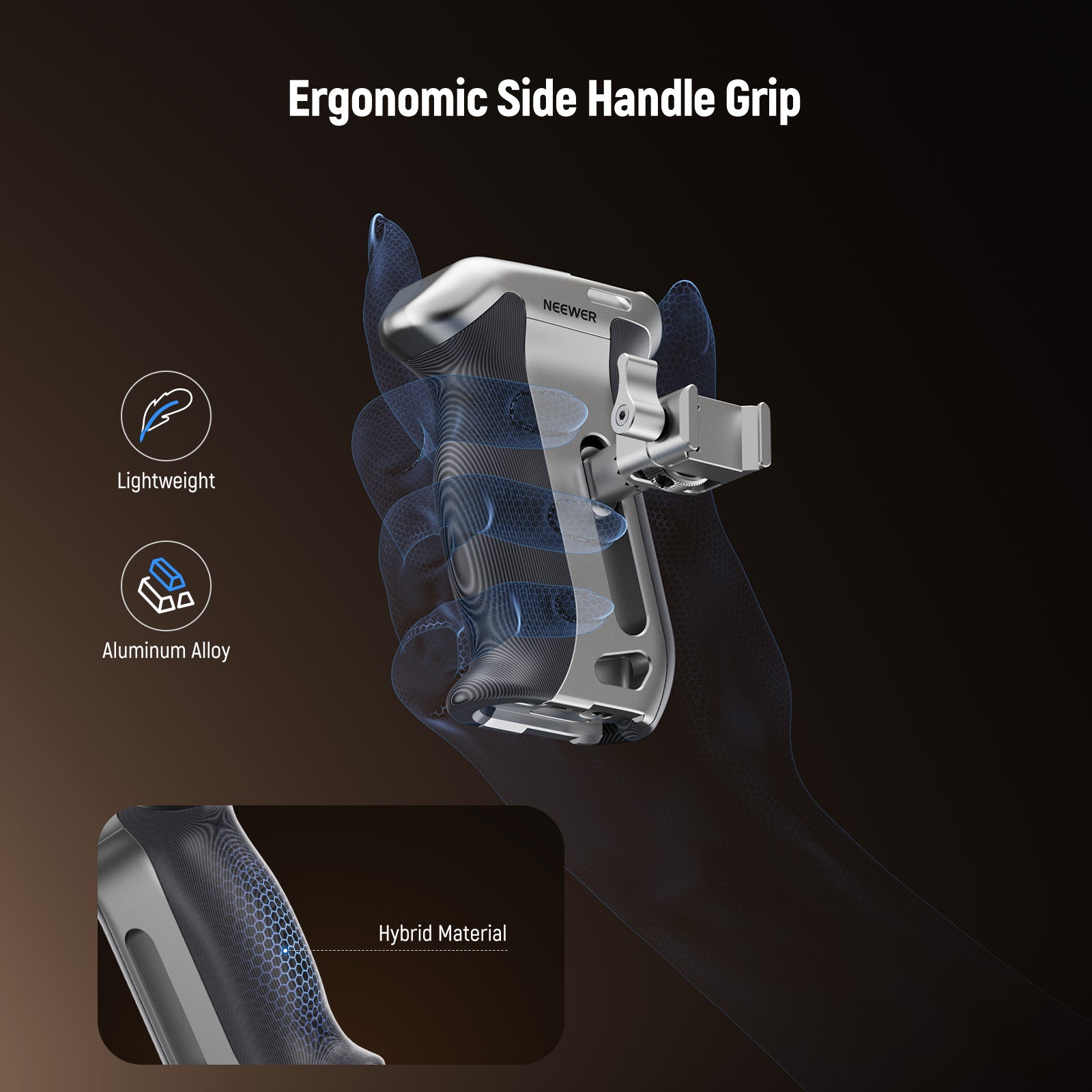 - Costruzione leggera ma robusta - Con una capacità di carico massima di 6,6 libbre/3 kg, la maniglia laterale fornisce un supporto stabile per fotocamere mirrorless e vlog. Con un peso di soli 8,9 once/251 g, è perfetta per sessioni di vlogging, riprese e fotografia prolungate