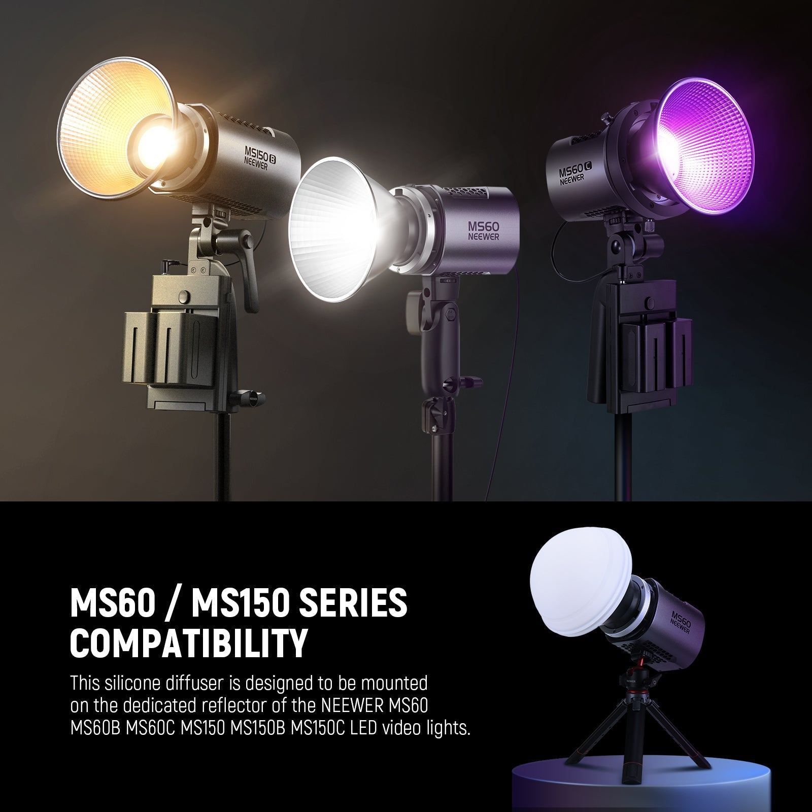 • For NEEWER MS60/150 COB Lights- This silicone diffusion dome is exclusively designed to mount on the dedicated reflector of NEEWER MS60 MS60B MS60C, MS150 MS150B MS150C LED Video Lights