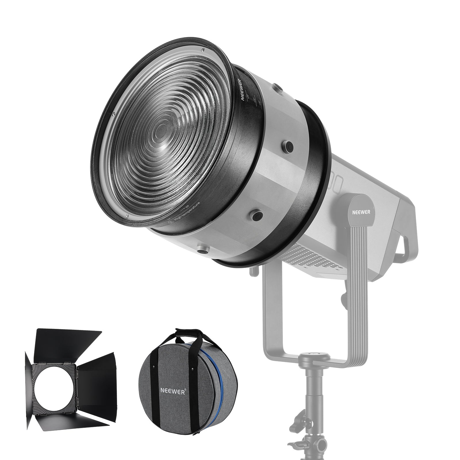 - Porte della stalla rimovibili - Controlla con precisione la diffusione e la direzione della luce con le porte della stalla rimovibili per ottenere effetti di luce creativi che migliorano la narrazione delle tue riprese cinematografiche e fotografiche