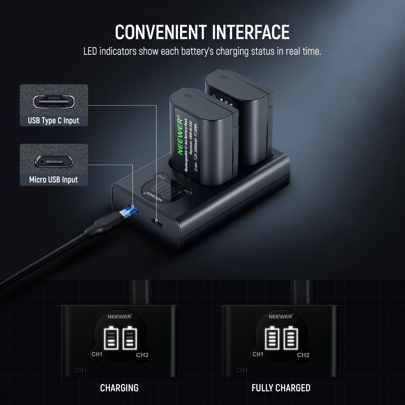 NEEWER DMW-BLK22 Set di batterie e caricabatterie di ricambio