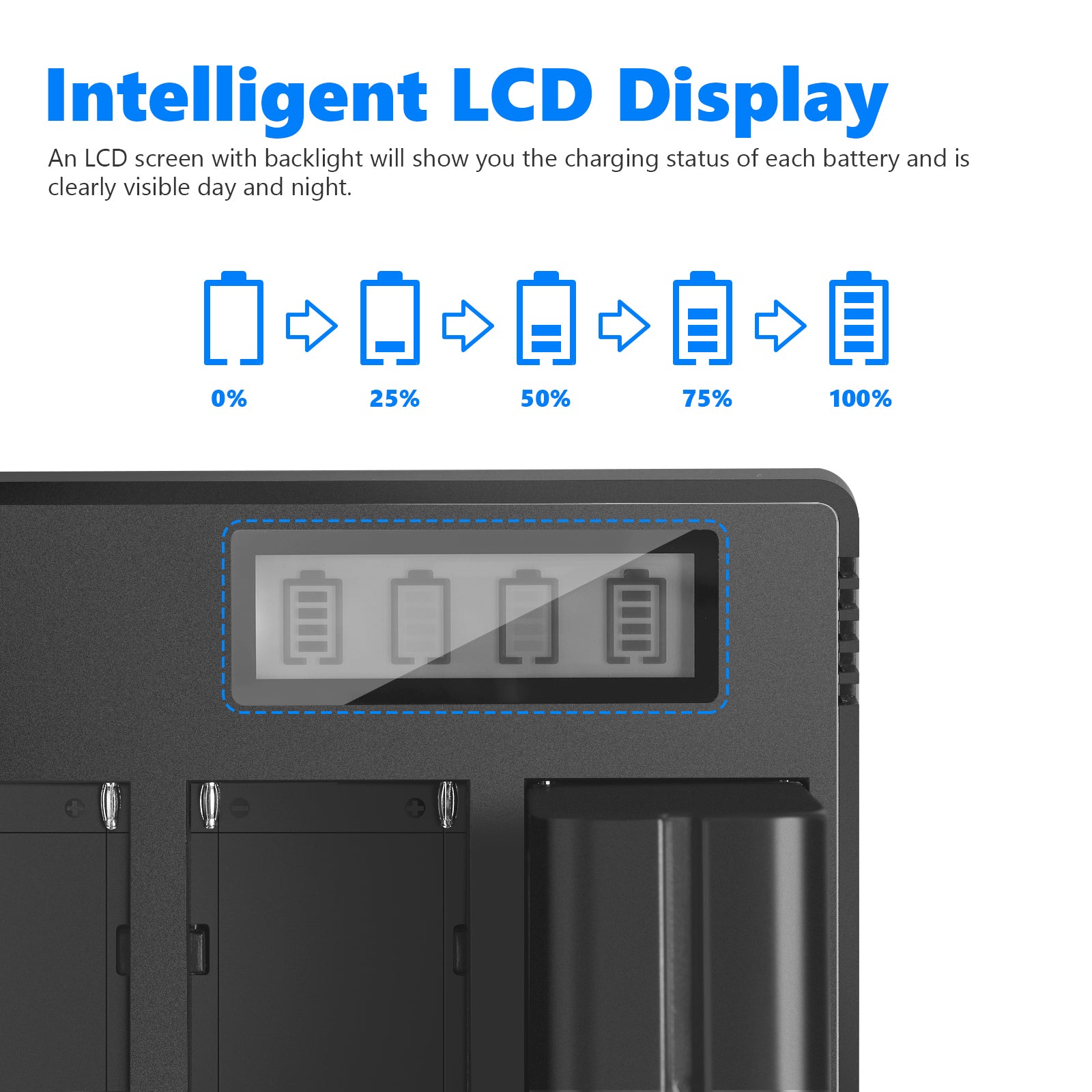 - Questo caricabatterie Neewer a 4 canali alimenta quattro batterie NP-F contemporaneamente. Trasferisce corrente 2A quando si caricano 1 o 2 batterie e corrente 1A quando si caricano 3 o 4.
