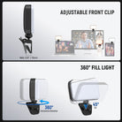 - Compact & Lightweight Phone Light- NEEWER N8 clip on overhead light is a premium soft fill light, compact at 3.3"x3.7"x0.7"/85x94x18mm, weighing only 1.94oz/55g. Mount onto a phone camera (compatible with iPhone), desk laptop, or desktop PC to flatter your skin and enhance your look in selfie pictures, vlogging recording, video conferencing, live streaming, Zoom calls, and more. The clamp features a ball head that enables 360< rotation and front to back tilting for versatile lighting angles