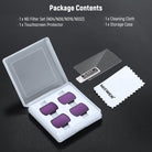 - Rivestimenti nanometrici multistrato - Rivestimenti nanometrici multipli su entrambi i lati resistono ad acqua, olio, polvere, graffi e impronte digitali per un'elevata durata durante le riprese all'aperto e riflessi minimi. Facile da pulire con il panno di pulizia incluso