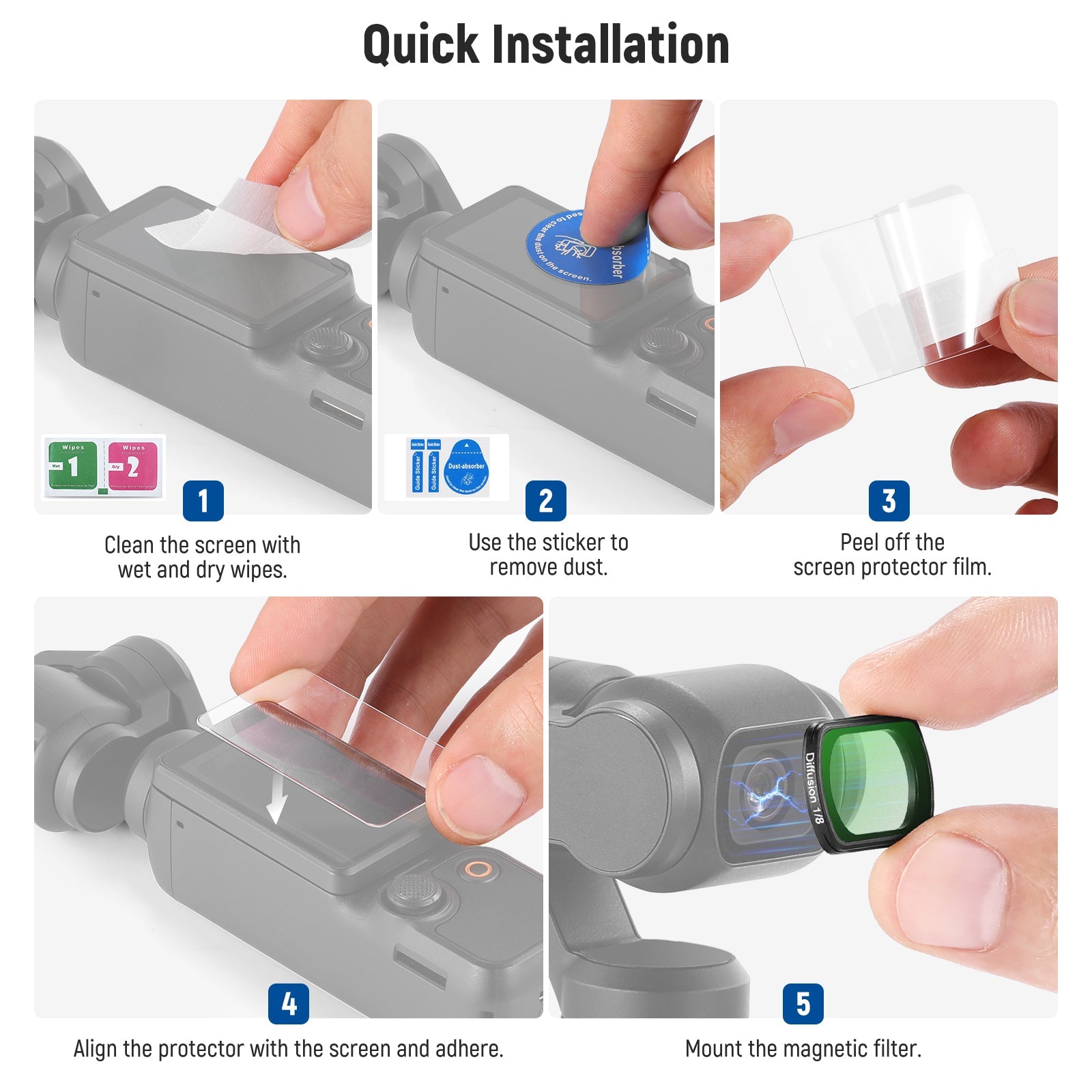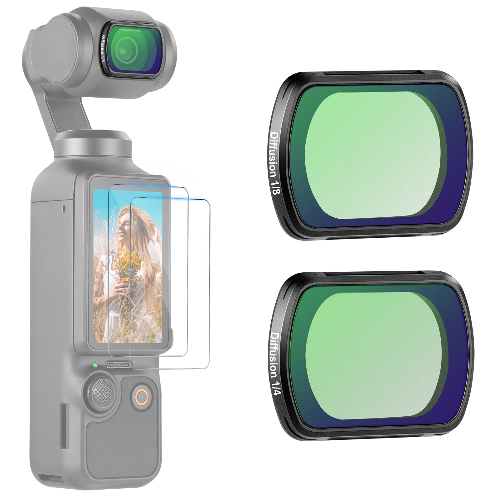 - Compatibile con DJI Osmo Pocket 3 - Questo set di filtri di diffusione neri da 1/4 e 1/8 è compatibile con DJI Osmo Pocket 3. Un punto di svolta per i professionisti e gli appassionati esperti di telecamere gimbal portatili, è dotato di attacco magnetico istantaneo e sicuro e vetro ottico HD per immagini cristalline durante i vlog e le riprese con la telecamera