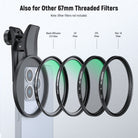- Ampia compatibilità : la clip per filtro per telefono è compatibile con iPhone 16 Pro Max, 16 Plus, 16e, 15 Pro Max, 15 Plus, 14, 13 mini, 12, 11 X e altri modelli di iPhone. Funziona con qualsiasi filtro da 67 mm, inclusi CPL, ND, UV, luce stellare, diffusione nera, GND e lenti con effetto striatura blu/oro.