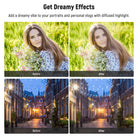 - Effetto cinematografico e sognante : il filtro di diffusione nero da 1/4 leviga la grana della pelle aggiungendo un effetto cinematografico e sognante ai tuoi scatti, perfetto per ritratti, selfie e vlog personali