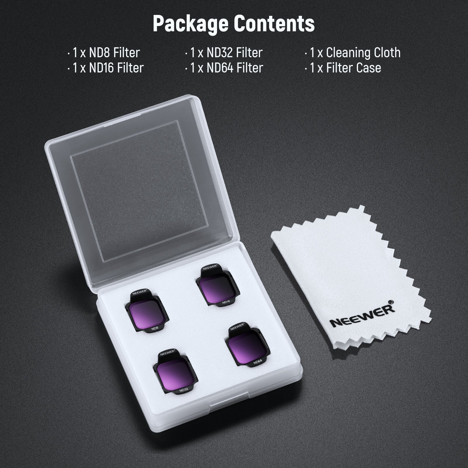 - Struttura leggera e sottile : ogni filtro garantisce una struttura leggera, sottile ma robusta per la fotografia con droni all'aperto in qualsiasi condizione atmosferica.