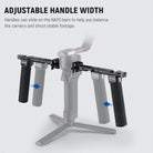 - Morsetti NATO a sgancio rapido - Due maniglie con morsetti NATO integrati si agganciano rapidamente alle lunghe barre NATO. Permettono di tenere il gimbal in posizione verticale o capovolto. I rivestimenti in gomma morbida e le scanalature antiscivolo garantiscono una presa salda.