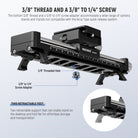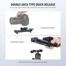 - Doppio sgancio rapido Arca Type - Una piastra a sgancio rapido Arca Type garantisce un montaggio rapido e sicuro della fotocamera. La base si collega facilmente a una testa per treppiede Arca Type per riprese stabili. La filettatura inferiore da 3/8" e un adattatore a vite da 3/8" a 1/4" si adattano a un'ampia gamma di supporti per fotocamere e treppiedi non compatibili con il sistema a sgancio rapido Arca Type.