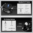 - Robusto e leggero - Realizzato in lega di alluminio anodizzato nero, il set di piastra a sgancio rapido e morsetto è robusto, leggero e portatile per le riprese in esterni, un accessorio essenziale per i creatori di contenuti e gli influencer. Capacità di carico: 5 kg. Piastra a sgancio rapido: 38 x 38 x 9 mm. Base del morsetto: 53 x 38 x 22 mm.