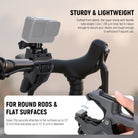 - For Round Rods & Flat Surfaces- The super clamp securely holds to flat surfaces up to 1.2 inches (3 cm) thick and poles up to 1.2 inches (3 cm) in diameter, great for desks, branches, crossbars, bicycle handlebars, fences, tripod legs, light stands, shoulder rigs, and more. The nonslip rubber pads enhance stability and protect the surfaces from scratches