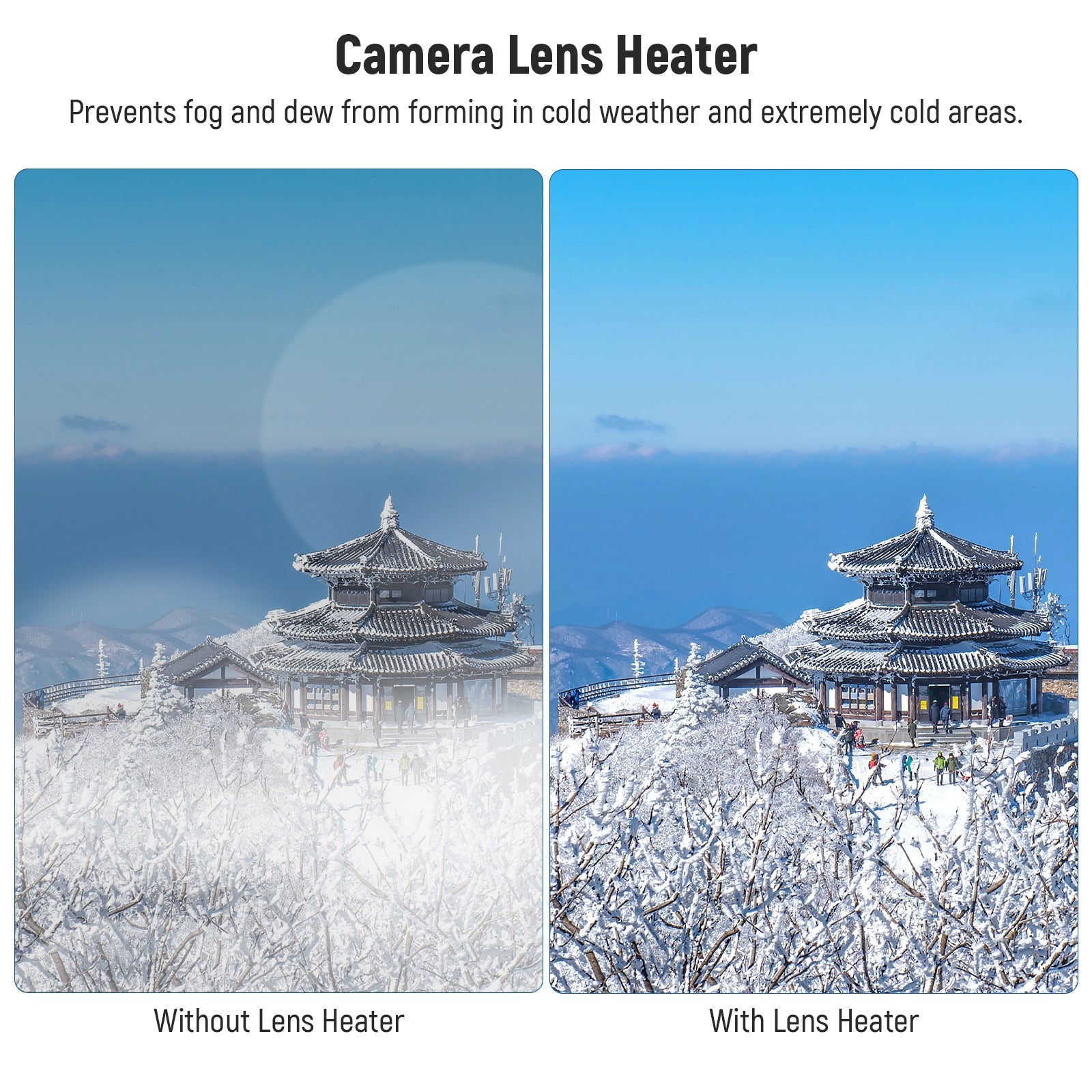 - Riscaldamento migliorato con tecnologia FPC - Progettato con FPC (circuiti stampati flessibili), questo riscaldatore per lenti leggero ma resistente utilizza pellicole di poliimmide come isolante per prestazioni dielettriche affidabili e termofoil come elemento riscaldante per una migliore conduttività termica e una maggiore efficienza di trasferimento del calore per un rapido e riscaldare uniformemente l'obiettivo. Nota: il riscaldatore della lente è pieghevole ma non può essere piegato
