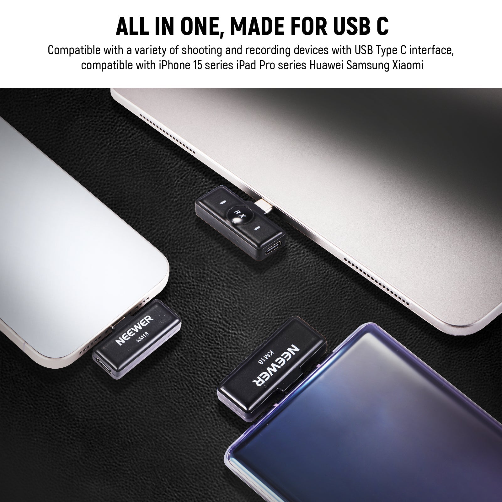 - Plug and Play, ampia compatibilità : la versione USB-C è progettata per telefoni Android, Apple 15, action camera e computer, offrendo un'uscita audio chiara e nitida. Senza alcuna configurazione complessa, TX e RX si accoppiano automaticamente. RX si accoppia automaticamente con telefono e tablet quando vengono collegati, senza bisogno di connettersi tramite Bluetooth o app. È compatibile solo con iPhone 15, Samsung Galaxy S23 S24 Ultra, altri smartphone, PC o laptop con interfaccia Type-C.