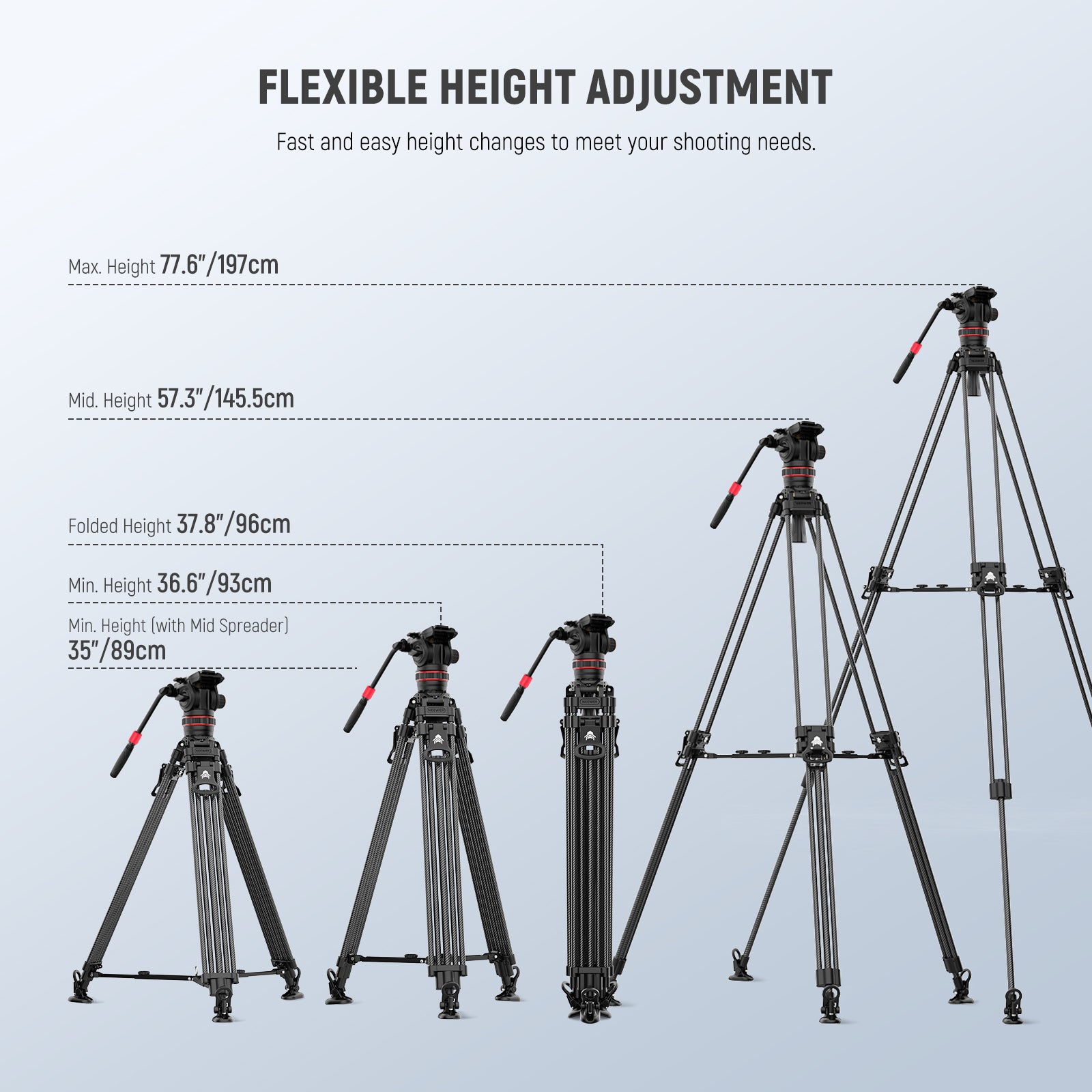 Treppiede video in fibra di carbonio NEEWER LL36 da 78"/197 cm con testa fluida