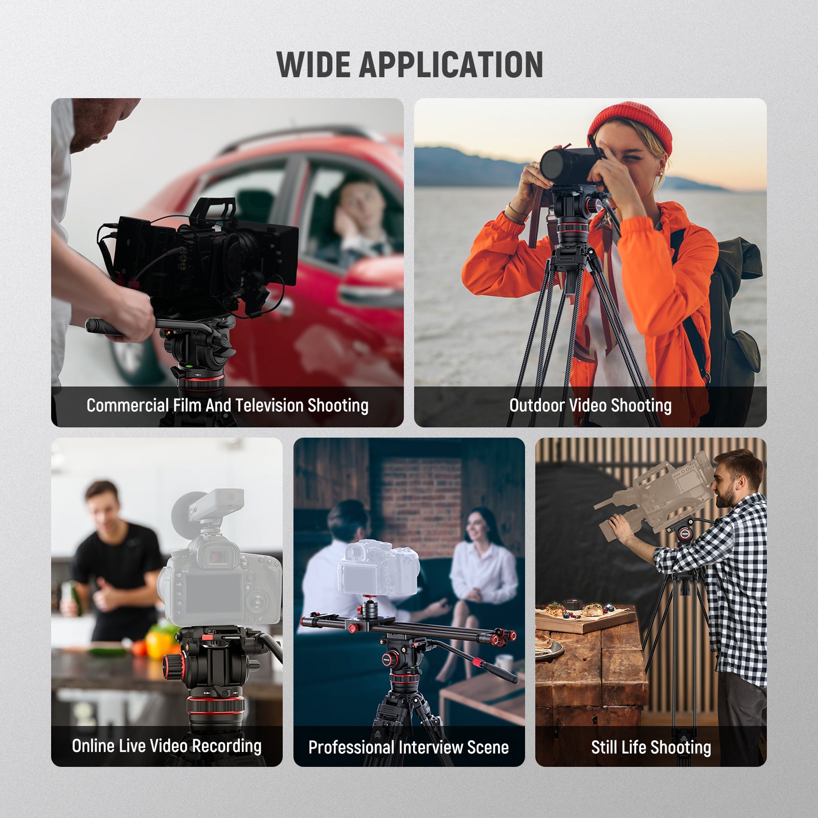- Applicazioni versatili : questo kit mobile con treppiede per videocamera professionale è ideale per un'ampia gamma di applicazioni, tra cui documentazione di animali, fotografia paesaggistica, riprese di film e video e streaming live su larga scala in ambienti sia interni che esterni.