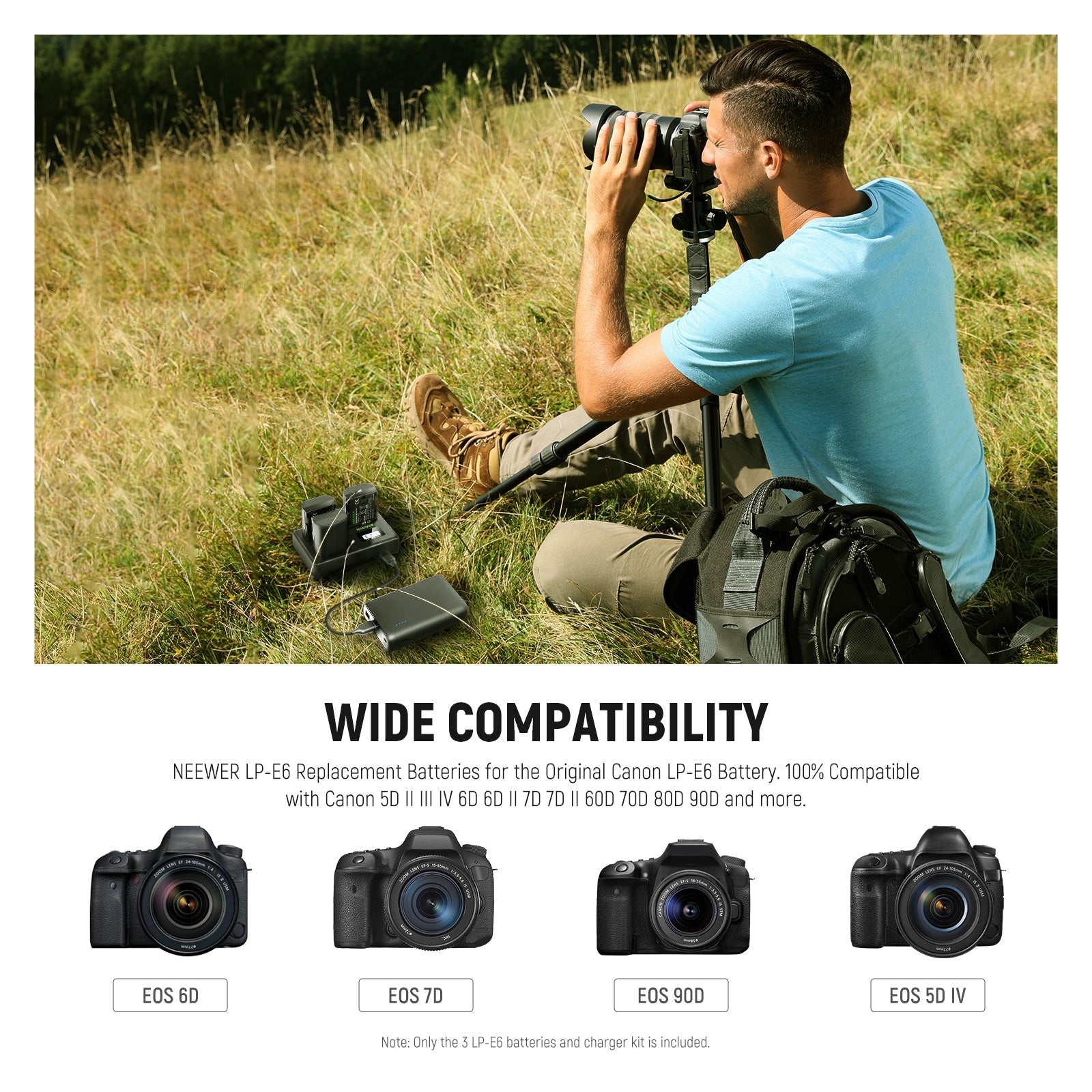 NEEWER LP-E6 Canon Batteria di Ricambio e Set Caricabatterie