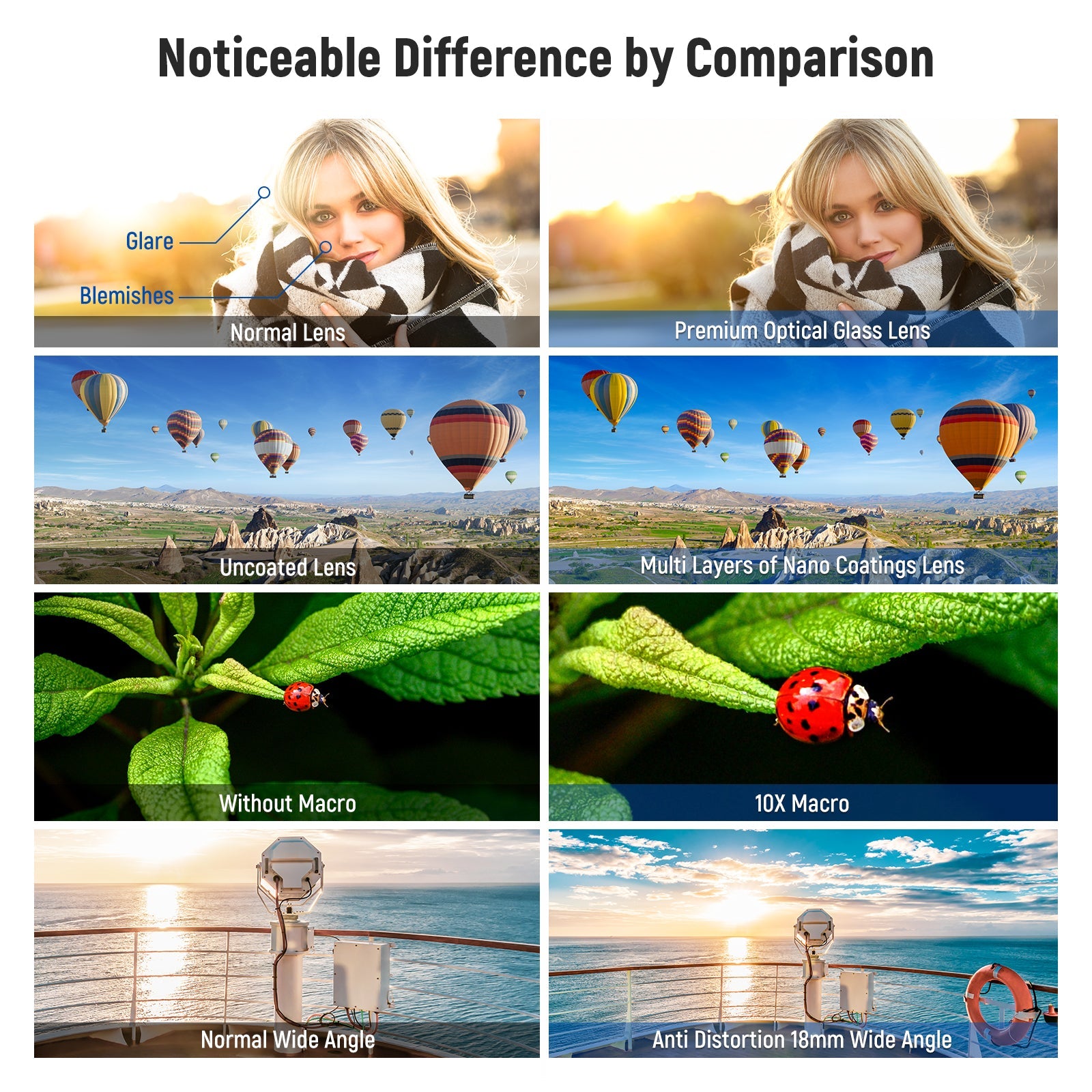 - Struttura a due elementi multistrato - Costruito con 2 gruppi di occhiali correttivi ottici HD a due elementi, accoppiati con multistrati di rivestimenti nano per ridurre la riflessione e l'abbagliamento, l'obiettivo macro grandangolare offre immagini ad alta risoluzione con colori naturali. Nessuna distorsione o aberrazione cromatica