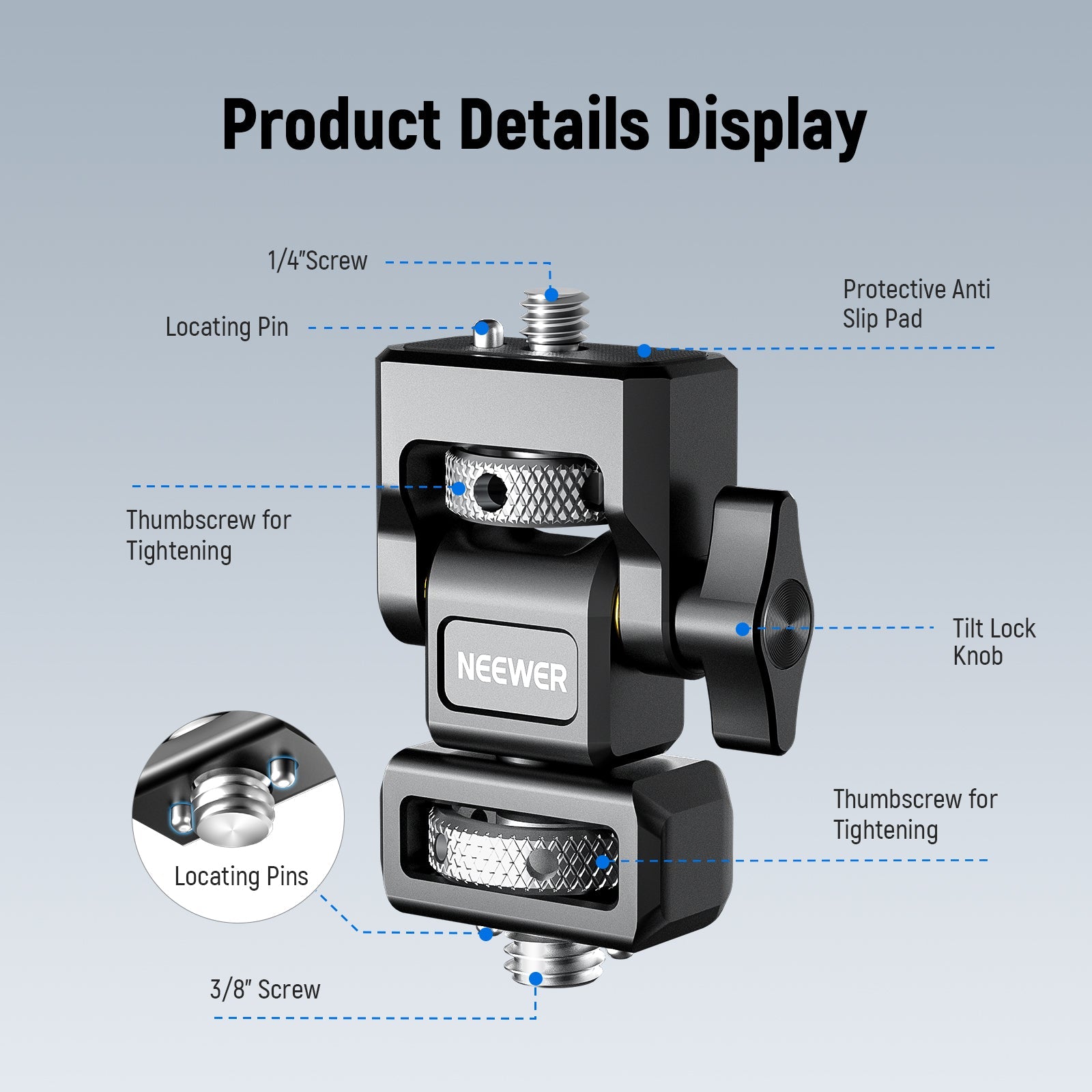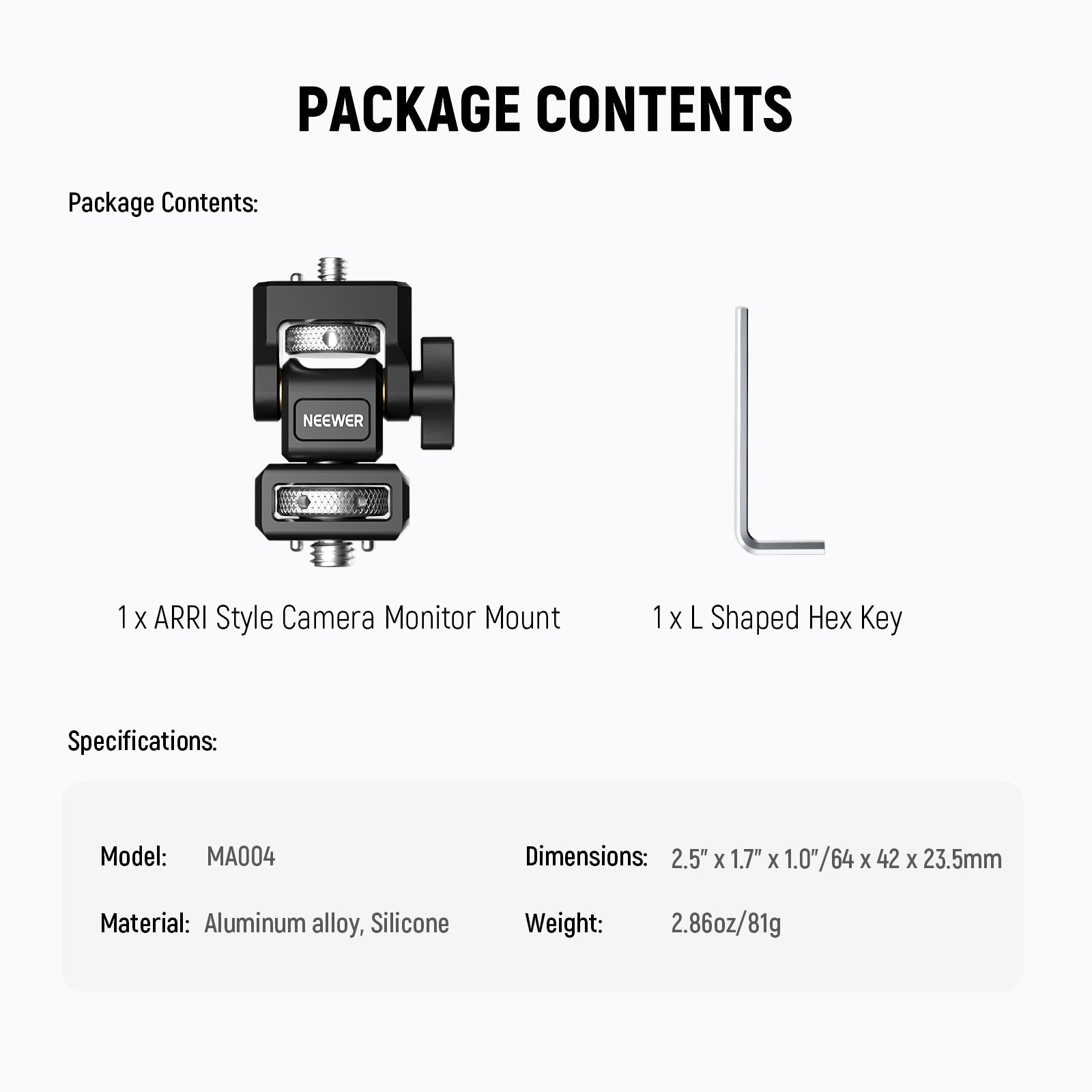 - Design Doppio Anti Torsione - La vite superiore da 1/4" con perno di posizionamento antitorsione retrattile e cuscinetto in silicone antiscivolo blocca saldamente NEEWER F100 F200 F400 PRO F500 e altri monitor (compatibile con Atomos Ninja V Ninja V+). Inoltre, la vite zigrinata consente una mano veloce il fissaggio e le fessure con la chiave esagonale a L inclusa forniscono maggiore sicurezza per il serraggio