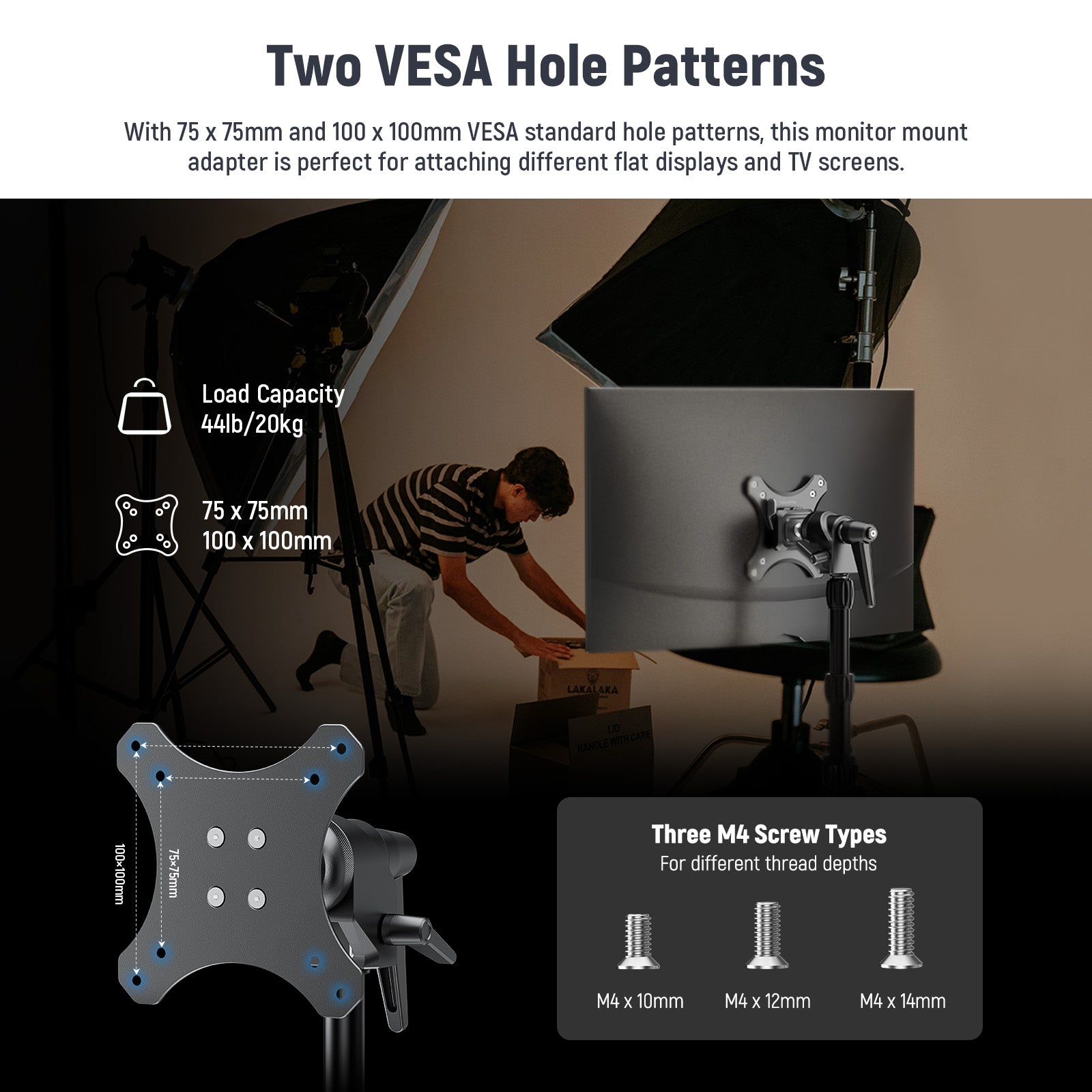 - Supporto per monitor VESA standard : con fori standard VESA da 75 x 75 mm e 100 x 100 mm, questo adattatore per supporto per monitor è perfetto per fissare display piatti, schermi TV e monitor da campo fino a 44 libbre/20 kg.