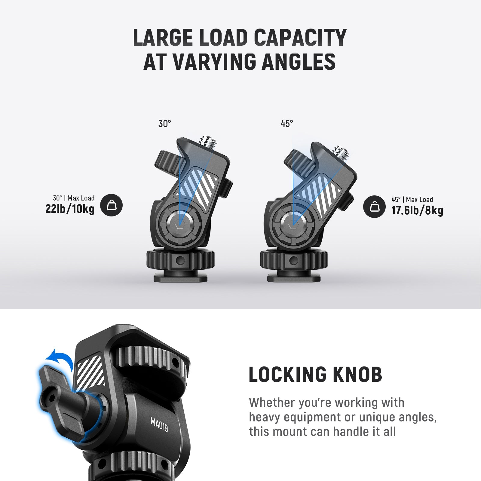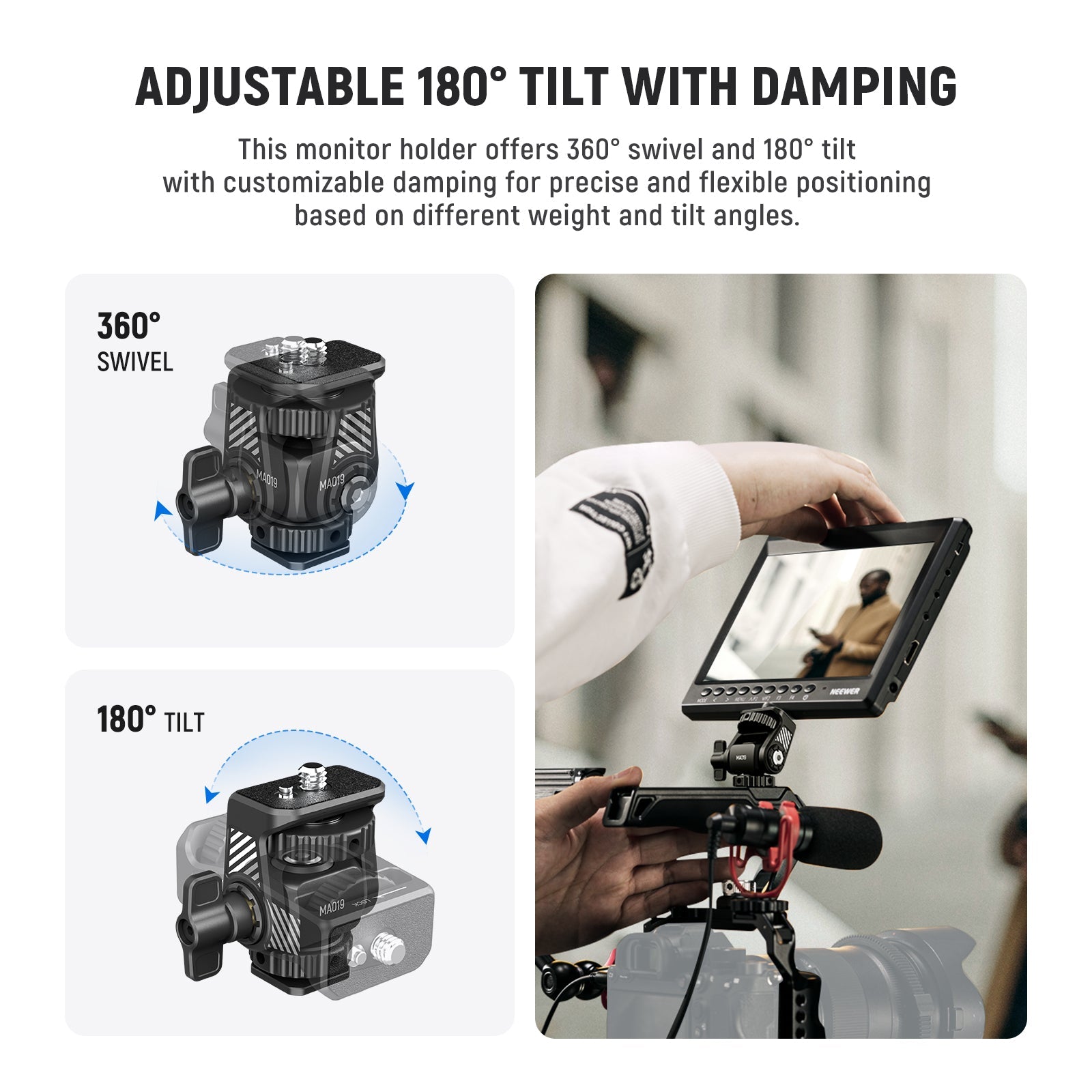 Supporto per monitor della fotocamera NEEWER MA019 con slitta fredda, rotazione a 360°, inclinazione a 180°