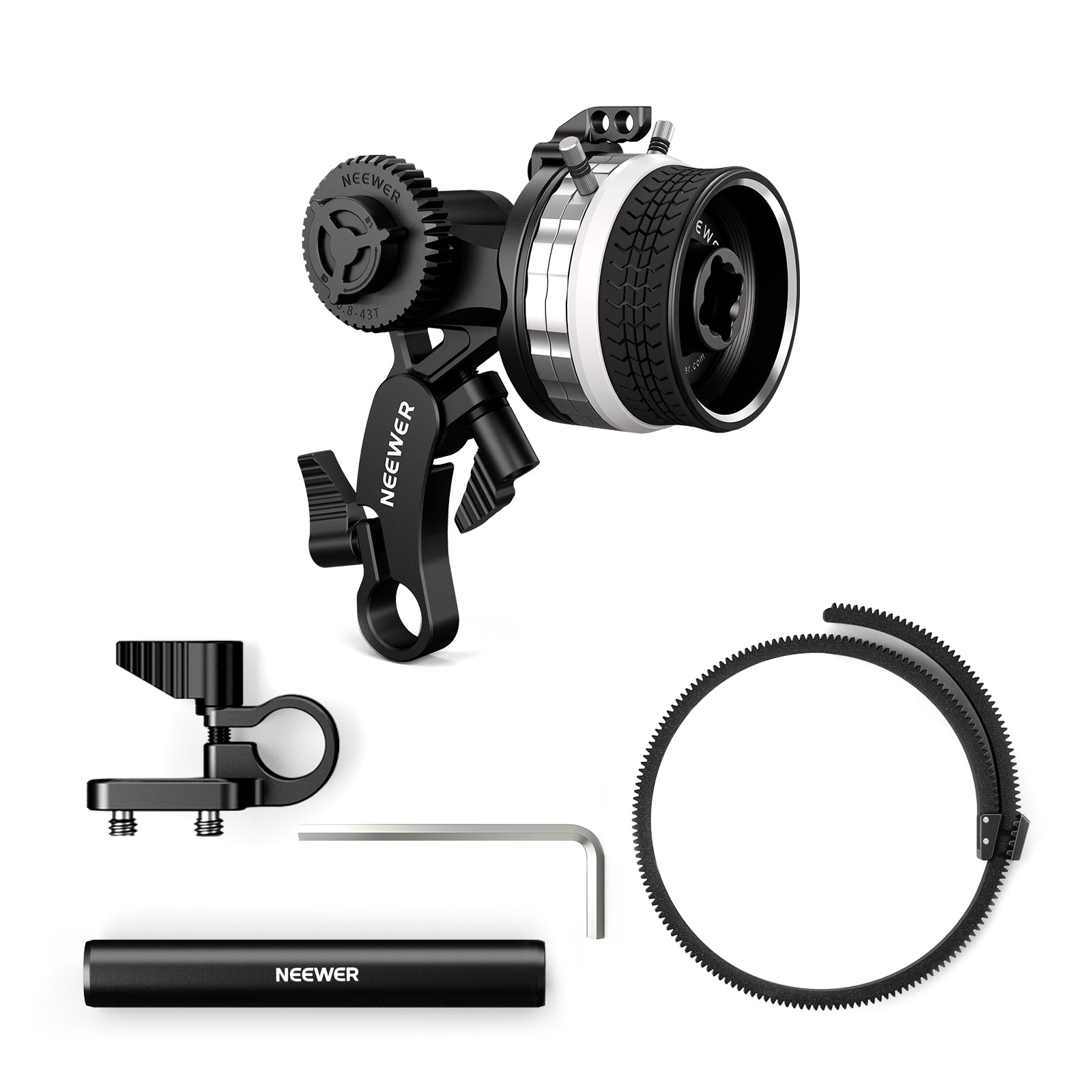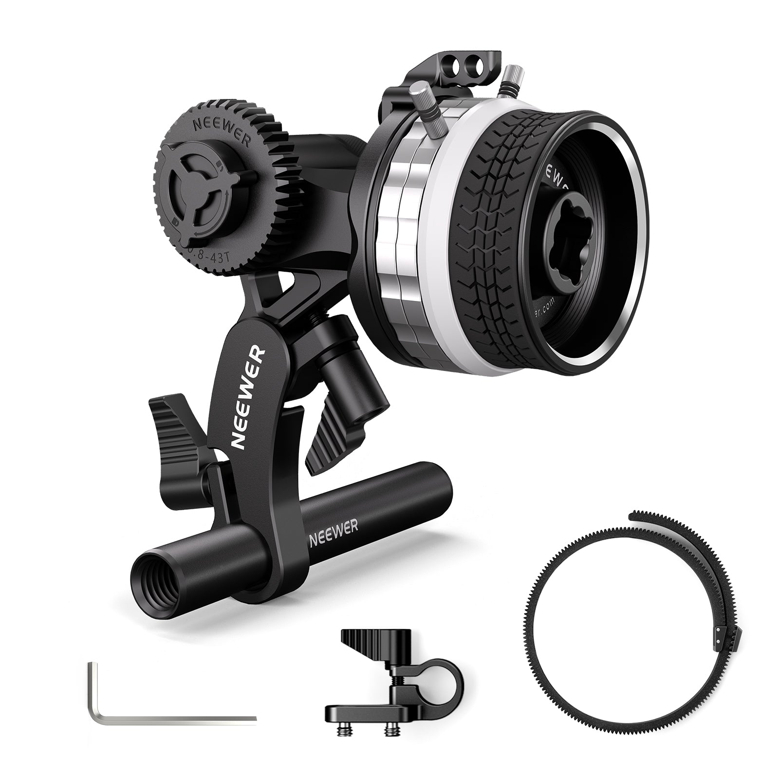 - Messa a fuoco manuale fluida - Il Mini Follow Focus NEEWER PG001 consente una messa a fuoco manuale fluida per la registrazione video. L'anello dentato adattabile dell'obiettivo si adatta a un'ampia gamma di obiettivi fotografici fino a 114 mm di diametro. Con un peso di soli 320 g (11,3 once), il Follow Focus può rimanere nella tua borsa e viaggiare in giro per il mondo con te