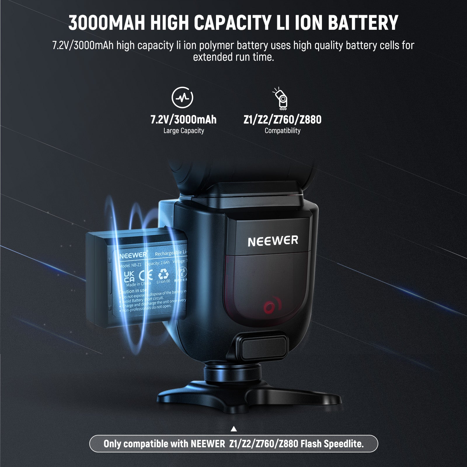 NEEWER NB-Z1 PRO 7.2V/3000mAh Batteria sostitutiva agli ioni di litio per Flash Speedlite