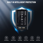 - Sicurezza e affidabilità : adotta materiali di prima qualità e tecnologia avanzata, la batteria agli ioni di litio è dotata di protezione integrata da sovraccarico, sovrascarica, sovratensione, sovracorrente e surriscaldamento.