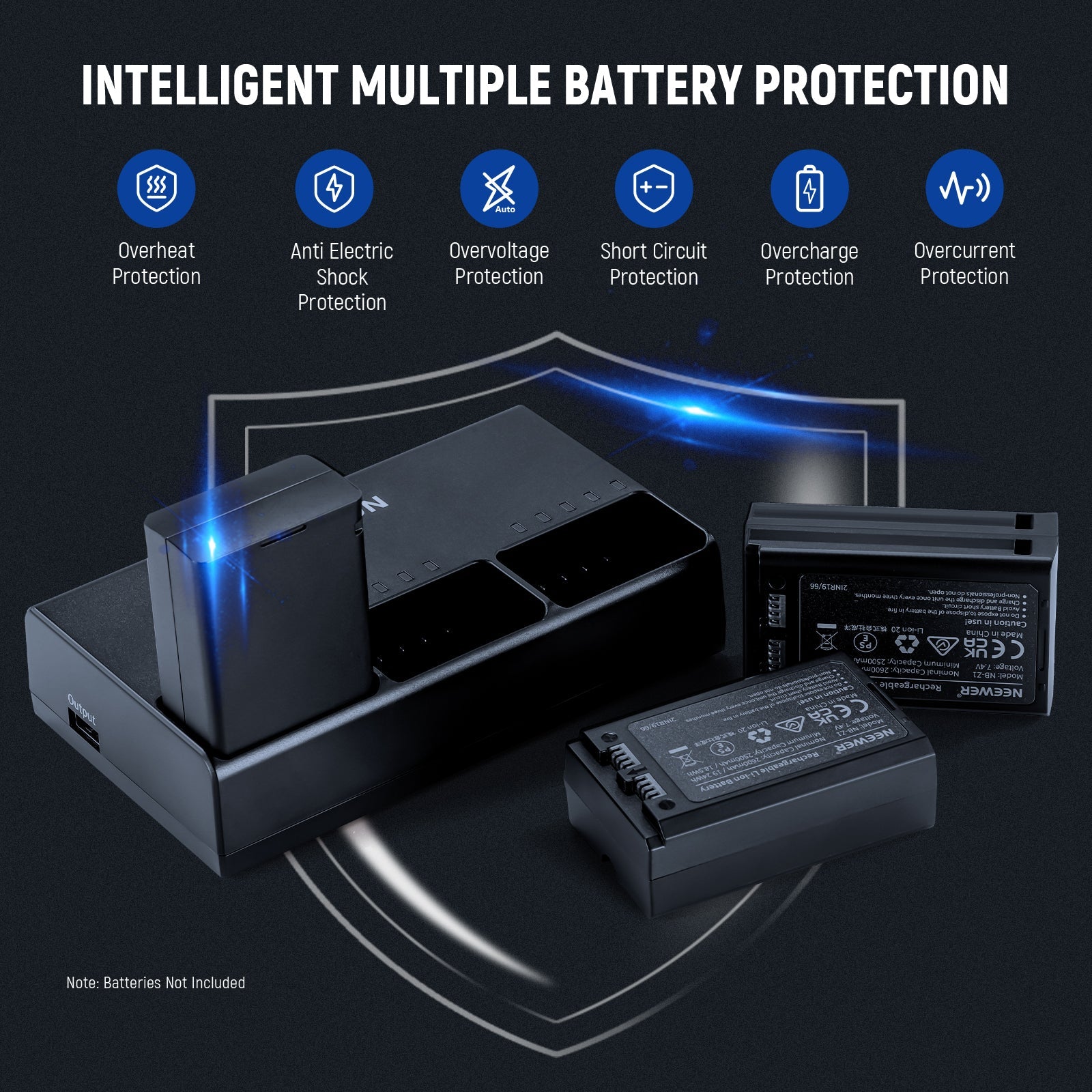 - Protezione intelligente di più batterie : il sistema di protezione del circuito integrato protegge questo caricabatterie flash da sovratensione, sovracorrente, cortocircuito, alte temperature, sovraccarico e scosse elettriche, garantendo una ricarica rapida senza danneggiare la durata della batteria.