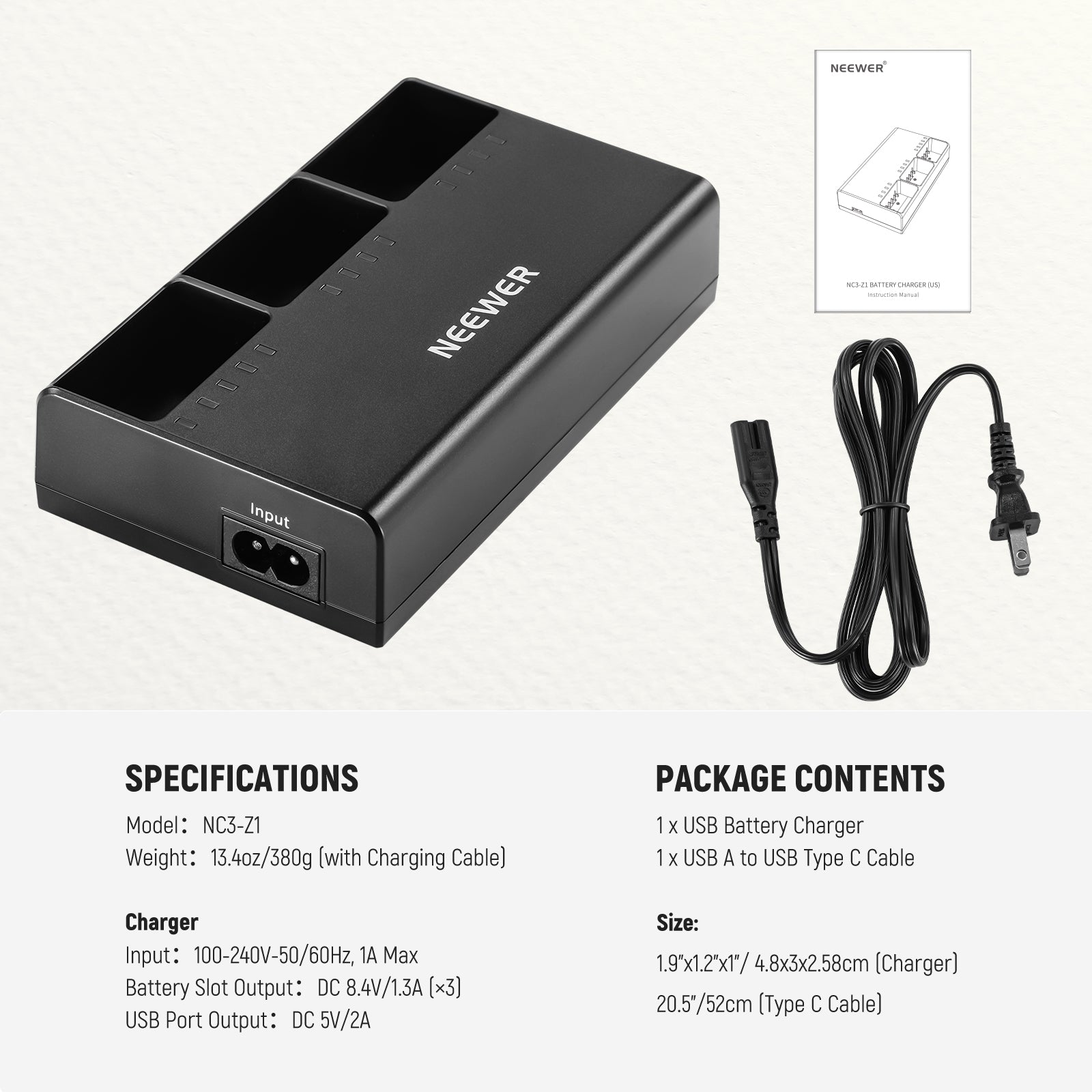 Kit caricabatteria triplo slot NEEWER NC3-Z1 per Z2 Z1 Z760 Z880