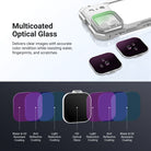 - Vetro ottico multistrato : offre immagini nitide con una resa cromatica accurata, resistendo all'acqua, alle impronte digitali e ai graffi. Include anche un panno per la pulizia e una custodia portatile.
