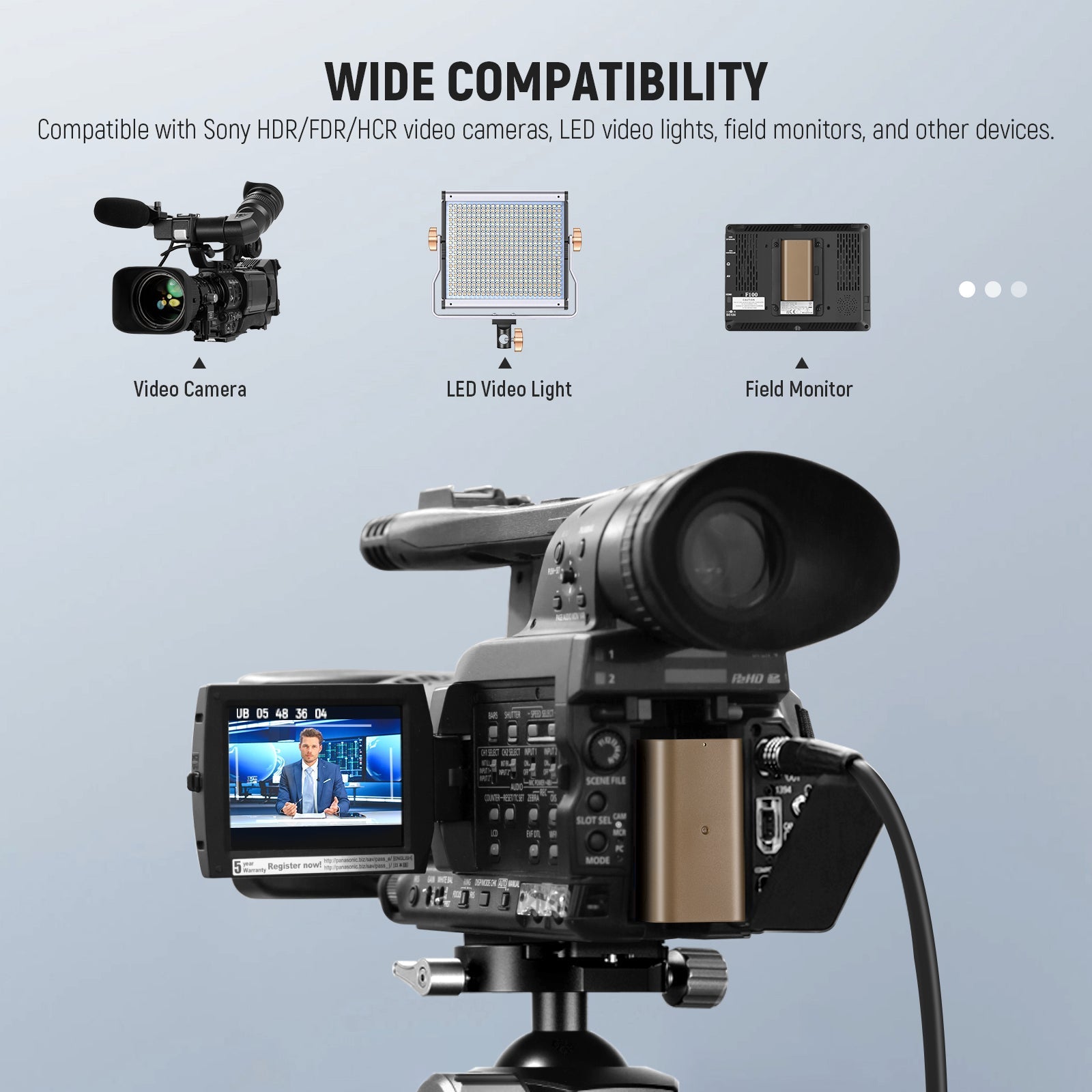 - Compatibile con varie apparecchiature : un ricambio per tutte le batterie della serie NP-F, incluse NP-F550, NP-F570, NP-F750, NP-F770, NP-F960, NP-F970, NP-F975. Compatibile con Sony CCD-RV CCD-SC CCD-TR CCD-TRT CCD-TRV CVX DSR DCR GV HDR HVL HVR MPK MVC PBD PLM fotocamere e videocamere della serie, luci a pannello LED NEEWER, luci ad anello e monitor da campo.