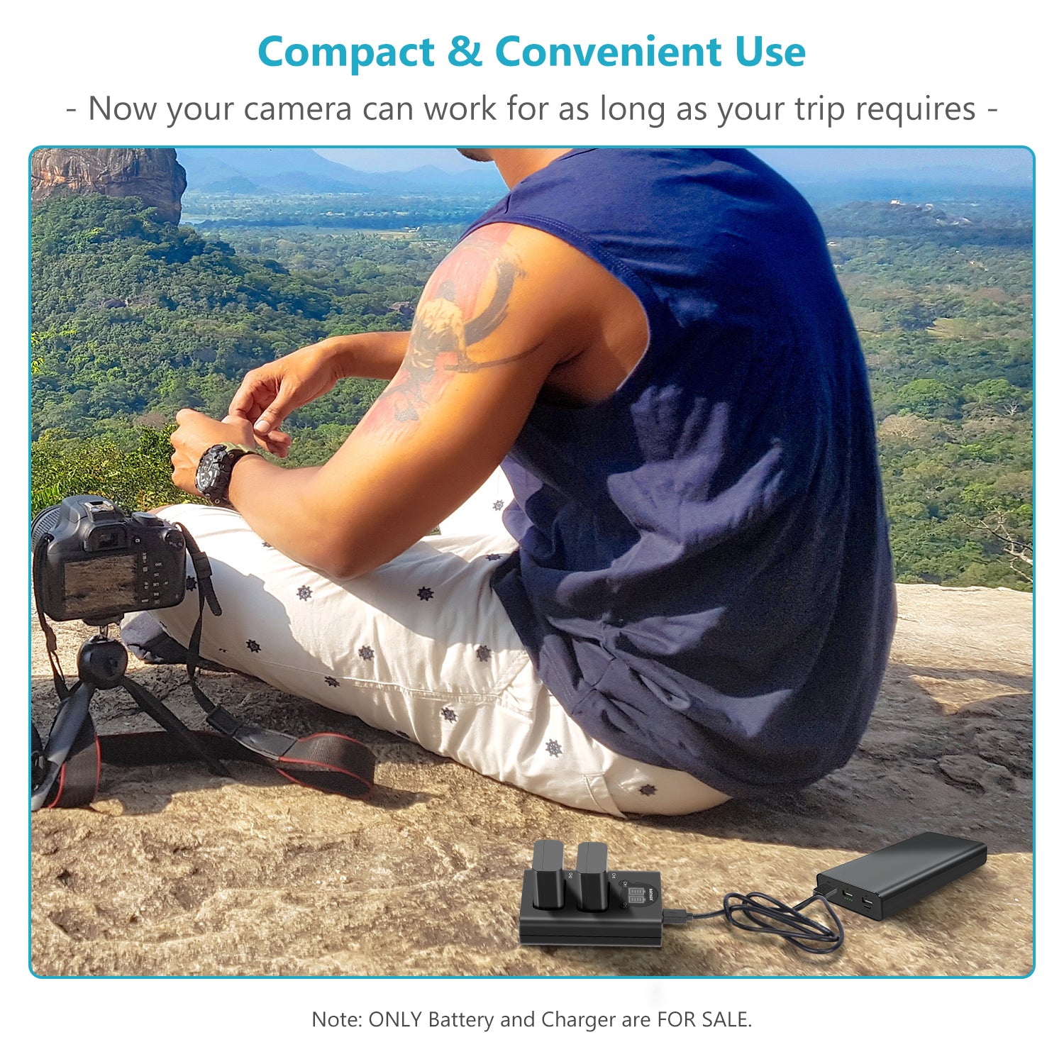 - Esattamente come l'originale, ma la maggiore capacità della batteria da 1100 mAh/8,1 W può essere caricata all'interno della fotocamera o utilizzando il caricabatterie con ingresso USB da 2,1 A per massimizzare l'efficienza di ricarica