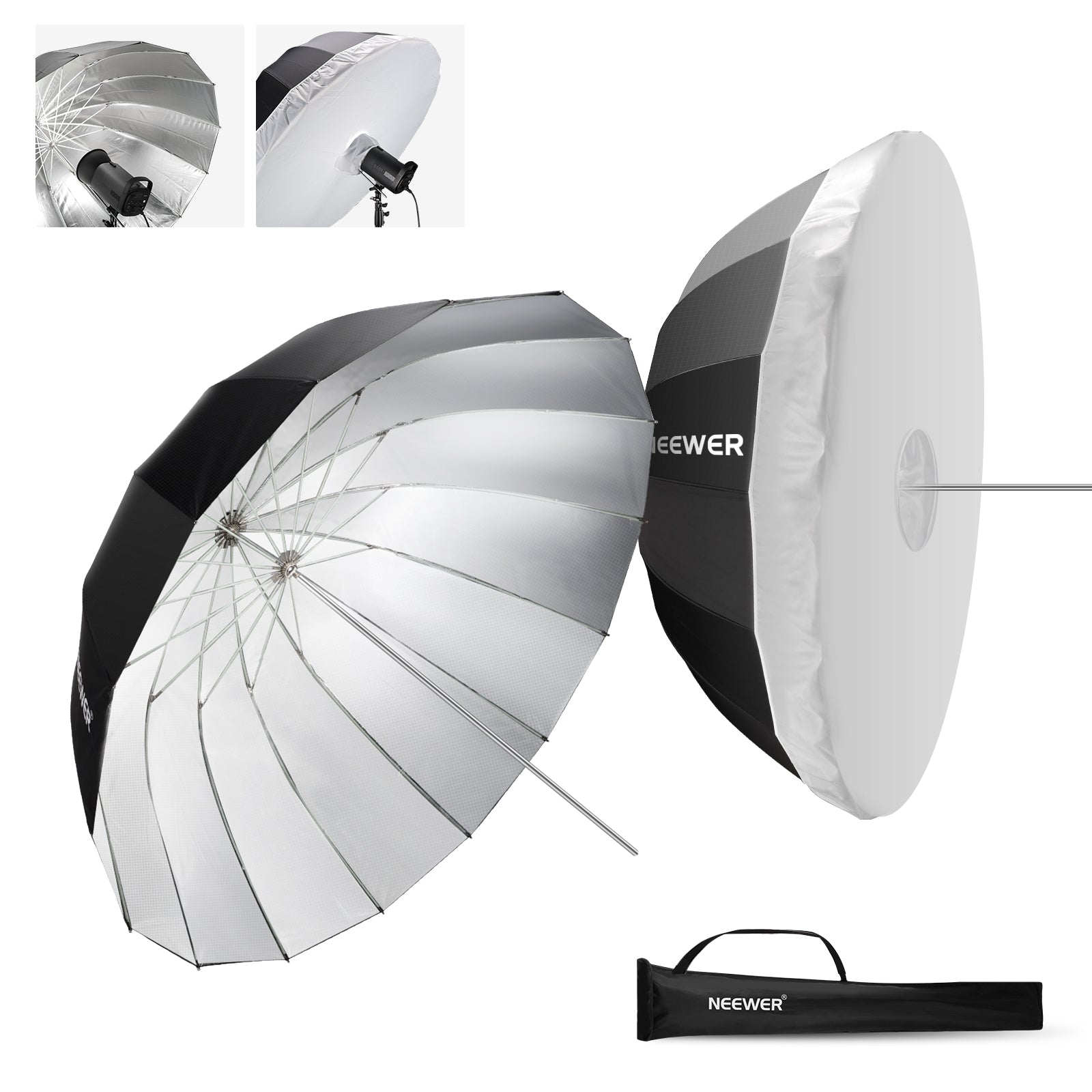 - Ombrello riflettente parabolico bianco/nero da 41"/104 cm - Questo softbox ombrello parabolico profondo 41"/104 cm fornisce un effetto di luce più morbido e diffuso in modo più uniforme rispetto alla versione nero/argento e preserva la temperatura del colore neutra per una resa cromatica fedele. Perfetto per ritratti di gruppo o paesaggi estesi. Il suo design a forma parabolica consente una più ampia diffusione della luce