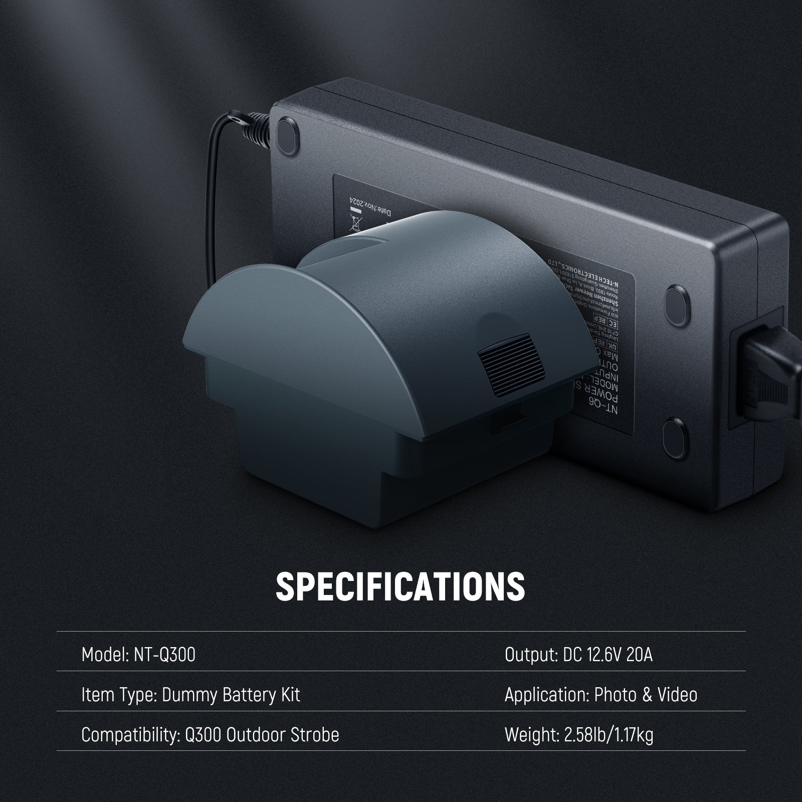 - Dummy Battery Kit for Q300- Fully compatible with NEEWER Q300 outdoor strobe flash, this NT-Q300 dummy battery kit continuously powers your flash, avoids the frequent battery replacement of the standard Q300 lithium battery via the included AC power adapter and cable, and is ideal for studio and indoor photography, vlogging, live streaming, and filmmaking