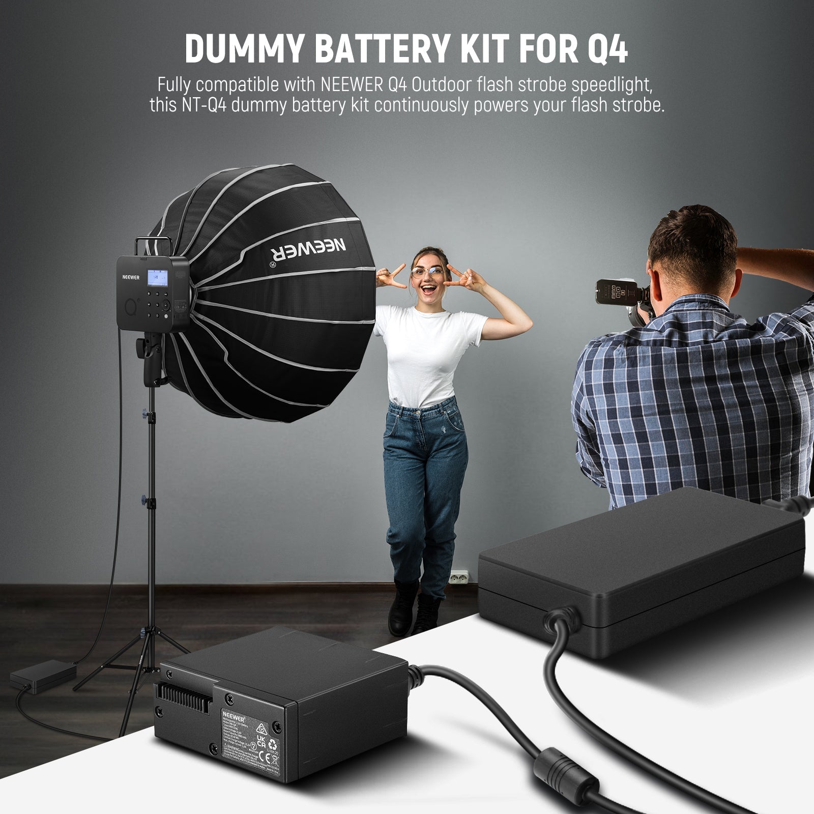 - Kit batteria fittizia per Q4 - Completamente compatibile con il flash stroboscopico per esterni NEEWER Q4, questo kit batteria fittizia NT-Q4 alimenta continuamente il tuo flash stroboscopico, evitando la frequente sostituzione della batteria al litio NB-Q4 (la batteria standard per la luce Q4) tramite l'adattatore di alimentazione CA e il cavo inclusi, perfetto per la fotografia in studio e in interni, vlogging, streaming live e riprese cinematografiche