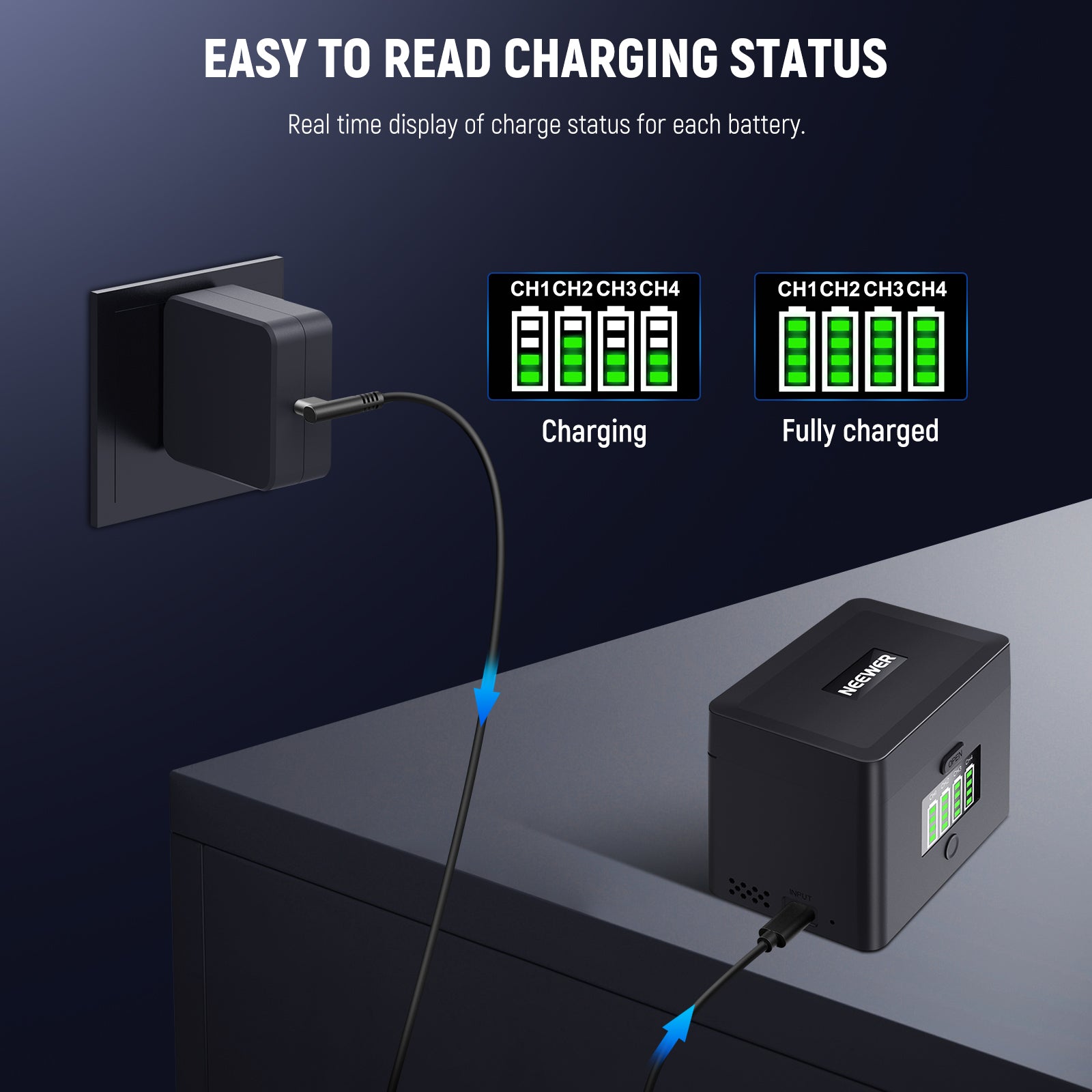 NEEWER NW-ZP4 Caricabatterie USB 2 in 1 a quattro canali per NP-FZ100 e LP-E6