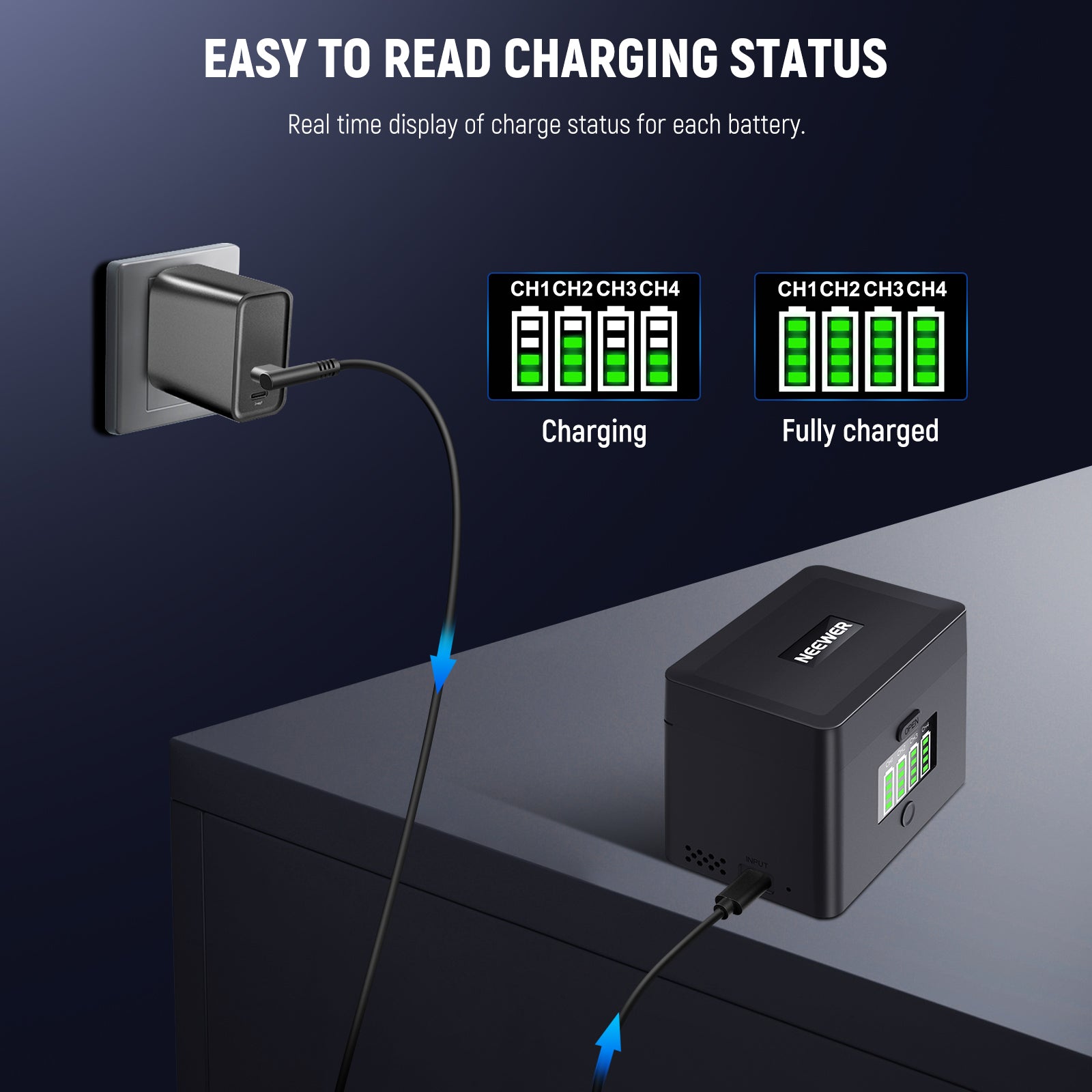 - Per batterie serie NP-FZ100/LP-E6 - Il caricabatterie a quattro canali NEEWER NW-ZP4 per accessori per fotocamere è progettato per ricaricare simultaneamente quattro batterie agli ioni di litio NP-FZ100, LP-E6, LP-E6N, LP-E6NH o LP-E6P, fornendo un'alimentazione di riserva efficiente e di lunga durata per scatti continui compatibile con Canon EOS R5 Mark II 6D/6D Mark II 5D Mark III 5D Mark IV compatibile con fotocamere Sony Alpha A7 IV A7 III A9iii A1 A7R V A7Cii A6700 ZV-E1 FX3 FX30 e altre. Nota: quando si utilizza un adattatore USB A, assicurarsi che supporti il protocollo QC 12V; altrimenti, questo caricabatterie non funzionerà. Si consiglia il caricabatterie USB C GaN NEEWER PD 100W.