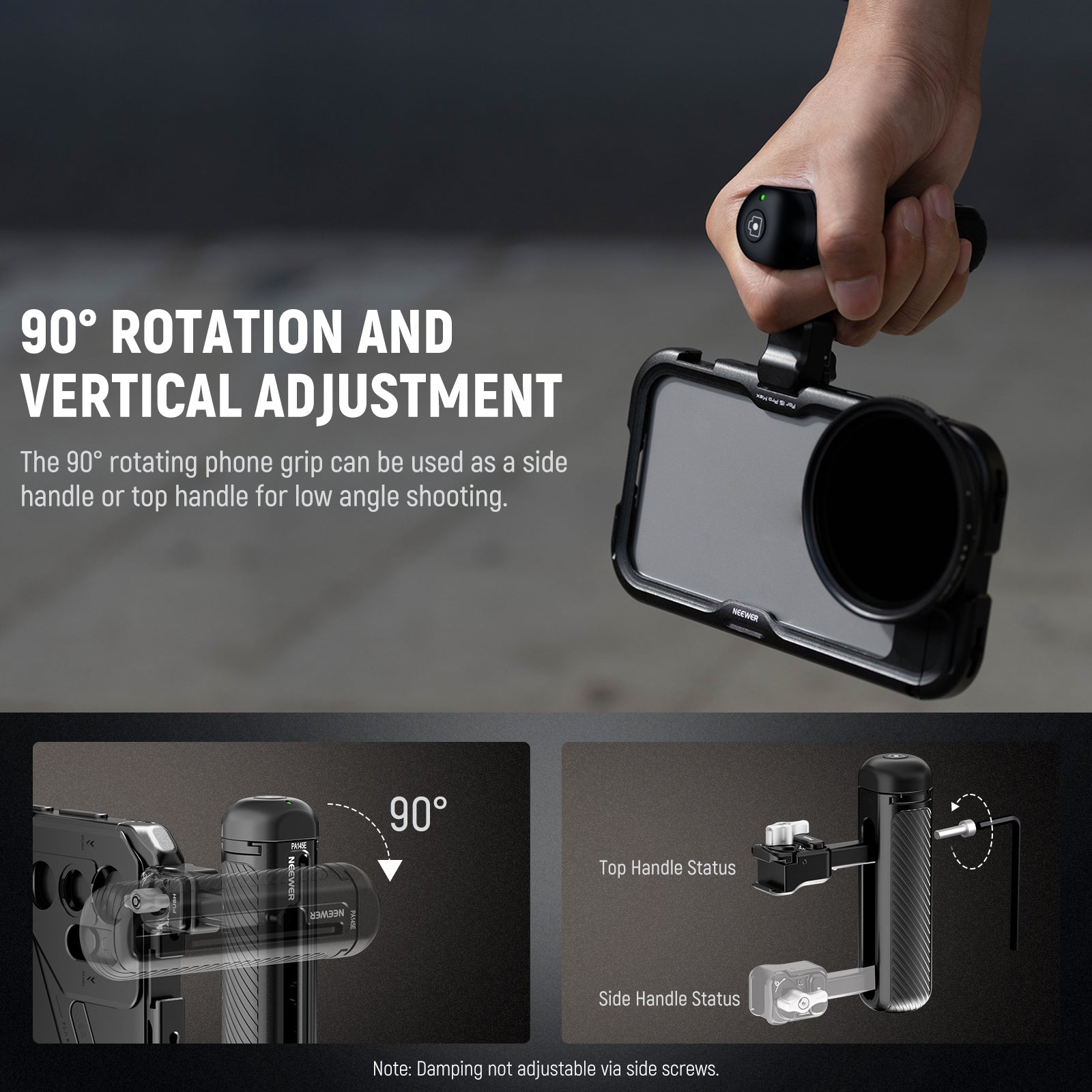 - Clamp On QR Side Handle- Designed for NEEWER phone cage models with quick release clamp slots, including PA043/PA044 for iPhone 15 Pro/15 Pro Max, PA073/PA074 for iPhone 16 Pro/16 Pro Max, PA042/PA082 for Galaxy S24 Ultra/S25 Ultra, and PA091 for Xiaomi 15 Ultra android cell phone. Ideal as content creato,r essential phone camera accessories and influencer must have photography gear