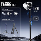 - Vite da 1/4" e foro filettato - L'impugnatura per luce video ha una vite da 1/4" nella parte superiore per fissare saldamente l'attrezzatura di illuminazione e un foro filettato da 1/4" nella parte inferiore per consentire un facile montaggio su un treppiede per fotocamera o un supporto per luce fotografica, garantendo un'installazione sicura e liberando le mani. Con un profilo sottile di 1,97"×1,97"×8,35" (50×50×212 mm), funge anche da supporto per luce portatile per riprese a mano stabili e comode.