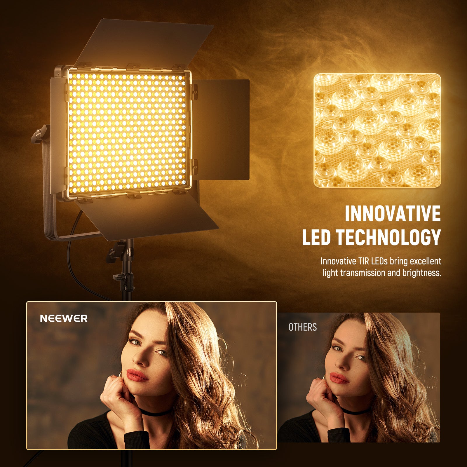 - Pannello luminoso bicolore ad alta potenza da 60 W - Il PL60B è dotato di un design ottico LED avanzato e di un modulo lente TIR per una luce penetrante di prima qualità. La potente potenza in uscita da 60 W con 640 LED genera un'illuminazione fino a 26600 Lx/0,5 m, con un CRI elevato di 96+, TLCI superiore a 97 per una riproduzione fedele dei colori. Passa tra le modalità calda e fredda entro 2500-8500 K, illuminazione ideale per riprese, podcast video, interviste, streaming live, barbiere, servizi fotografici di truccatori, prodotti, ritratti, ecc.