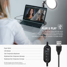 - Ricarica facile tramite USB : la luce selfie per telefono da 10 W funziona a 5 V/2 A, con un cavo di ricarica integrato da 1,9 m, può essere alimentata dall'adattatore o ricaricata tramite porte USB su display, monitor, laptop, computer o caricabatterie portatili, garantendo un'alimentazione ininterrotta per tutto il giorno, durante le videoconferenze con webcam. Nota: una volta collegata, si accenderà un indicatore LED blu. Quindi premere il pulsante ON/OFF per accendere o spegnere la luce ad anello circolare del pannello.