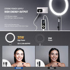 • Reversible Folding Light Stand- The tripod light stand with a 21"-71"/54-180cm height adjustment range can mount the ring light overhead or at eye level for phone camera photo and video recording, made of robust aluminum alloy to ensure reliable stability and durability. The stand legs fold upward for effortless storage and transportation