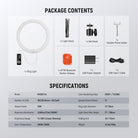 • CCT & FX Scene Effect Modes- With 90 cool white and 90 warm white LEDs, the CCT Mode offers 2900K-7000K warm and cool lighting along with 1%-100% linear dimming. The flexibly adjustable lighting with high CRI of 97+ and TLCI of 98+ can flatter all skin tones, brighten your face, and minimize blemishes. FX Mode brings 12 realistic scene effects for professional ring light video shooting. Use the wired controller to quickly get the effects you want
