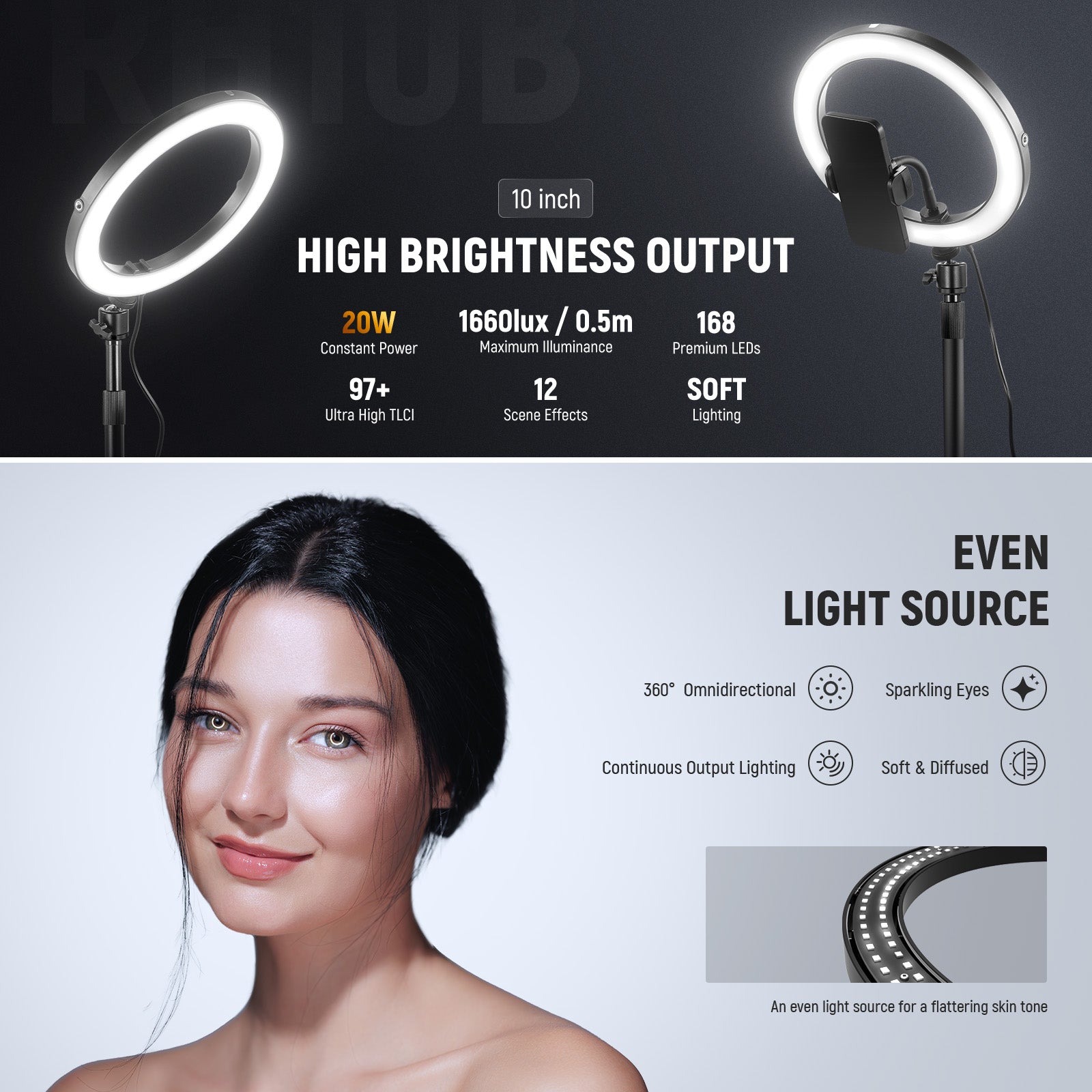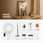 - Supporto da scrivania regolabile e angolo di illuminazione a 360° - Il nostro kit di luci ad anello selfie circle halo contiene un supporto da scrivania che va da 11" a 18"/29-45 cm e una testa a sfera a 360°. Adatta facilmente l'altezza desiderata e ruotala per trovare un angolo di illuminazione ottimale. Che tu sia uno streamer, un truccatore o che lavori alla scrivania, che tu faccia videoconferenze con la webcam del computer portatile o che tu stia filmando video, questa configurazione regolabile offre la flessibilità di cui hai bisogno