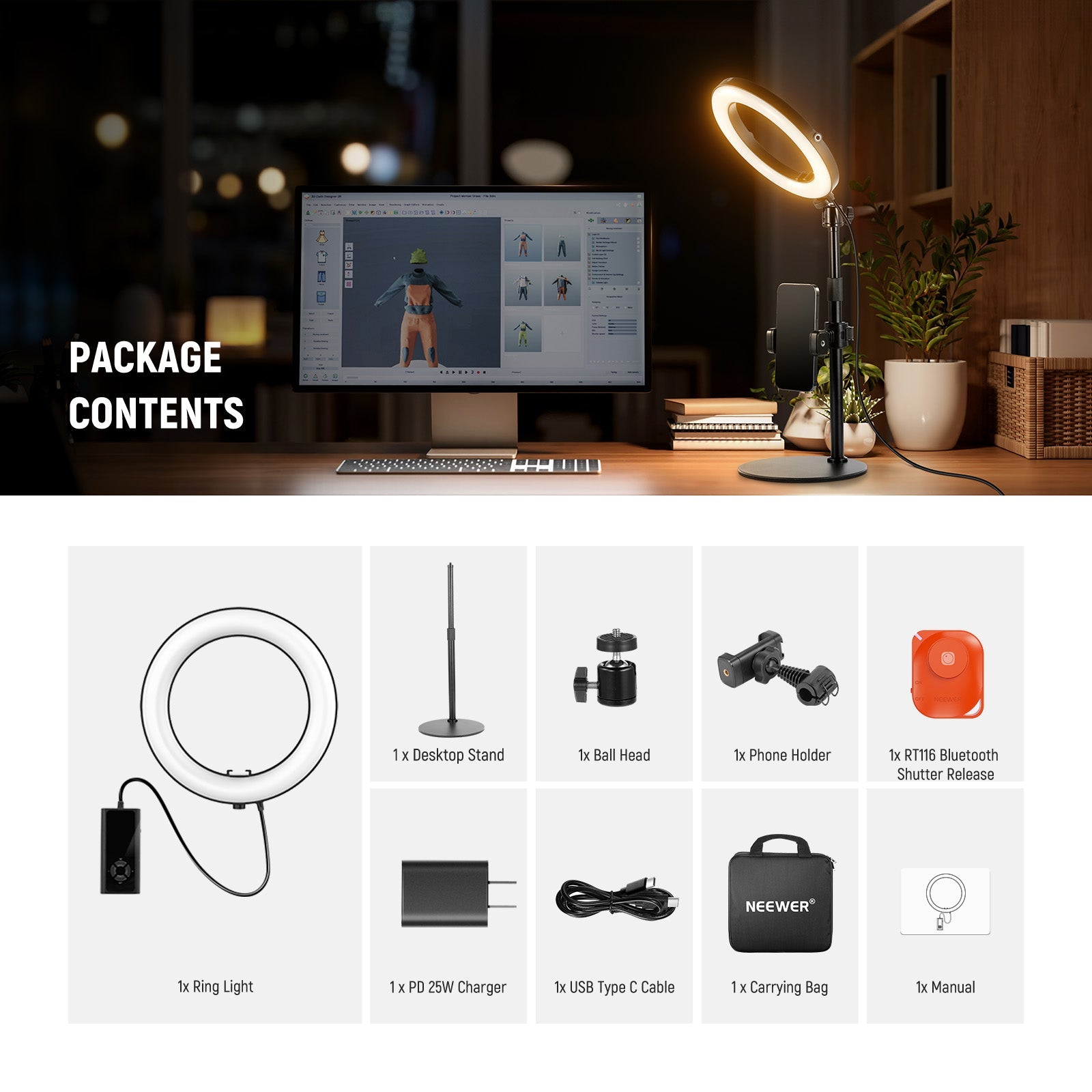 NEEWER RH8B 8" Luce ad anello da scrivania con supporto