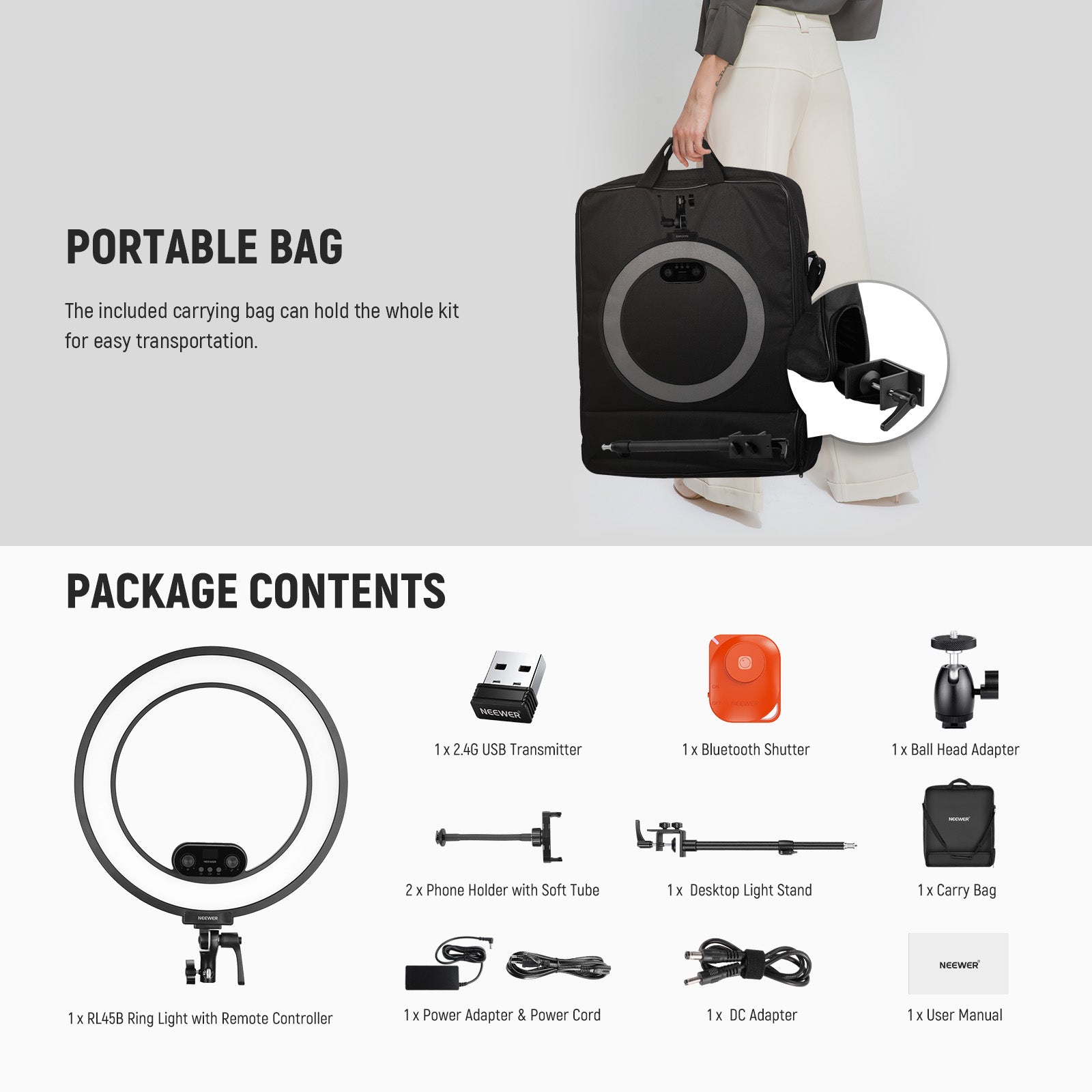 Kit luce ad anello illuminato con bordo sottile NEEWER RL45B 45W 18".