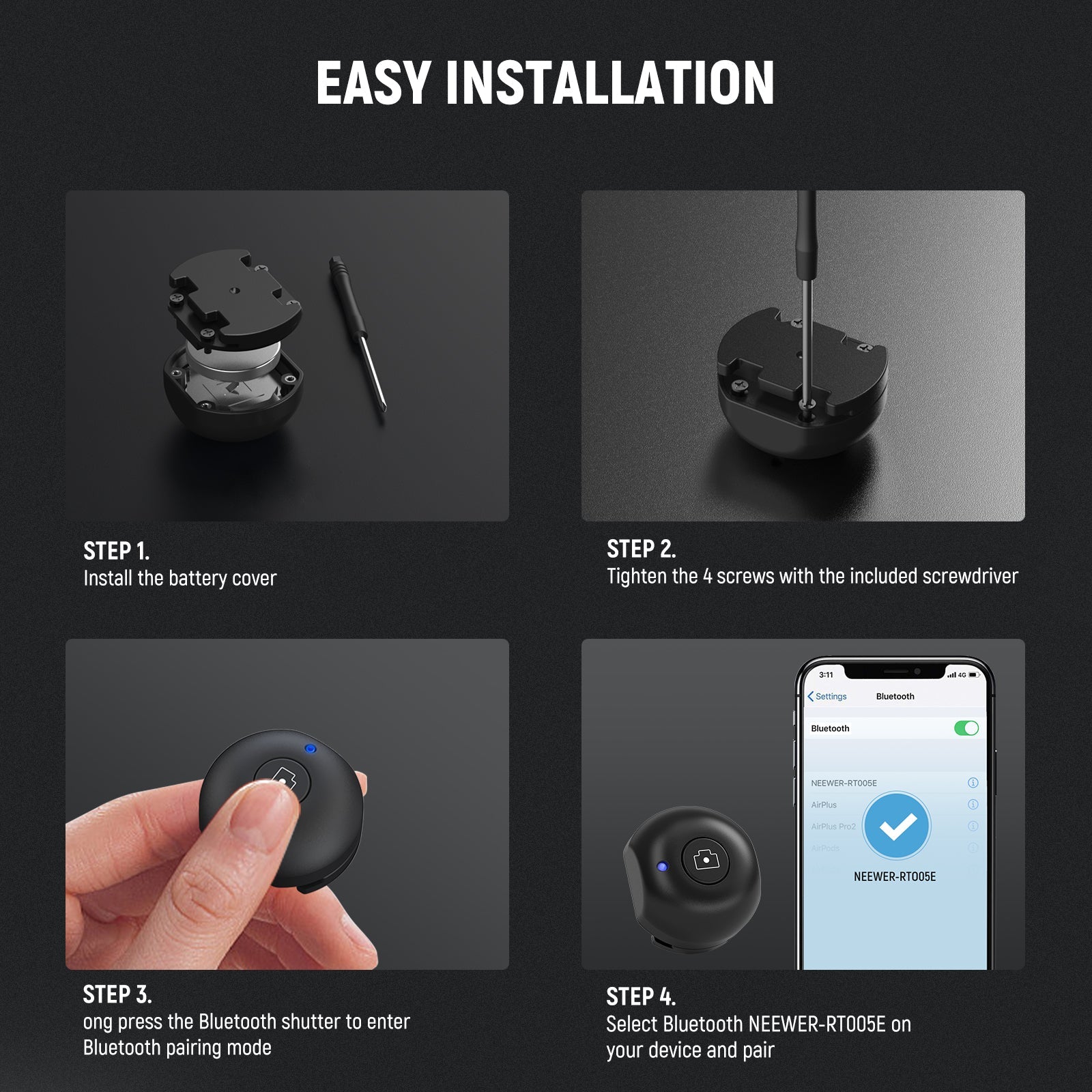 NEEWER RT005E Cold Shoe Cover per impugnatura laterale Bluetooth Shutter
